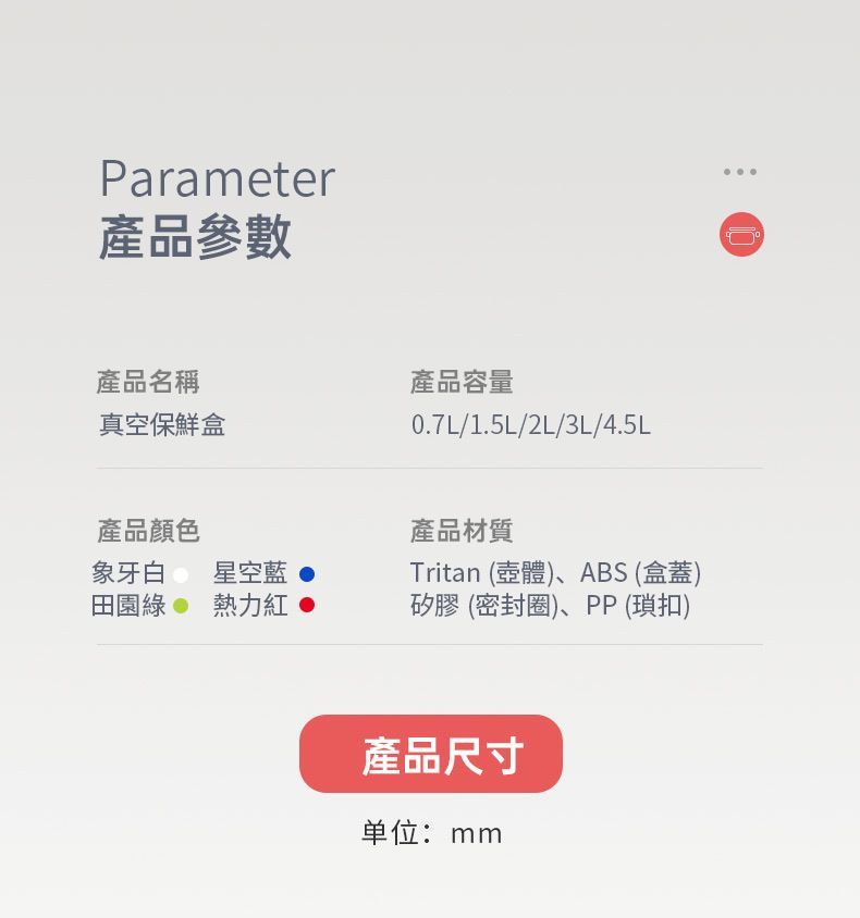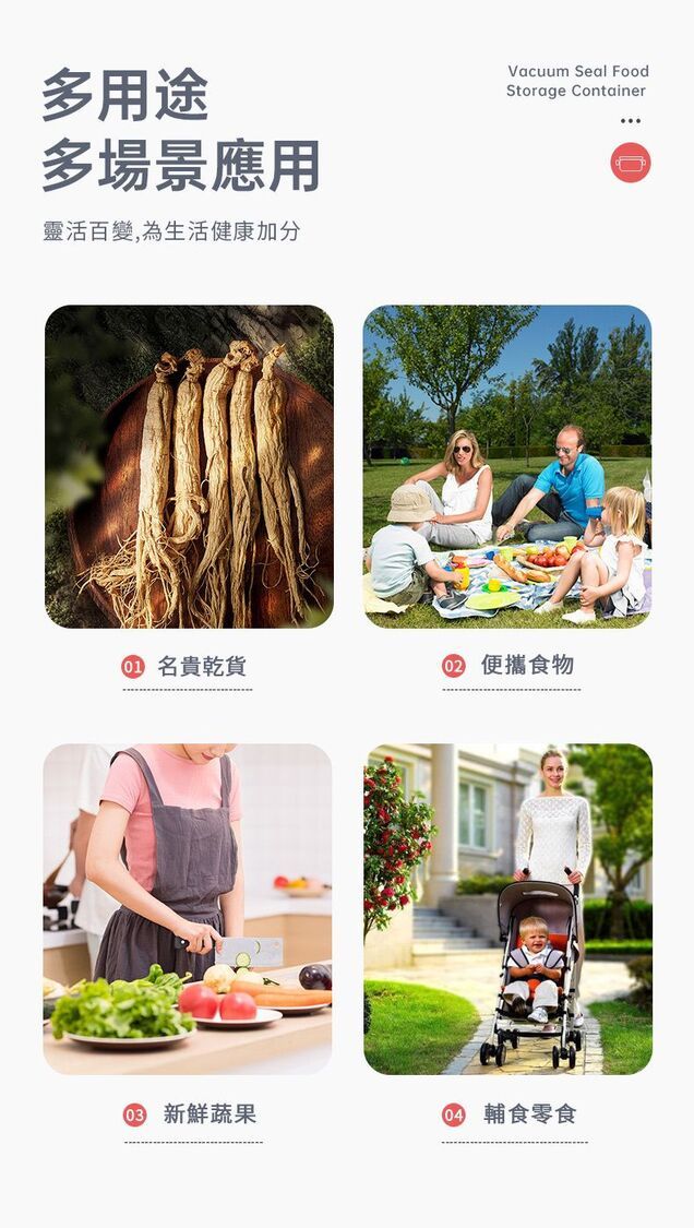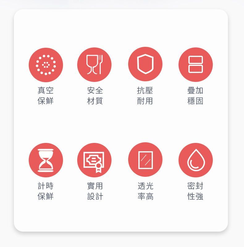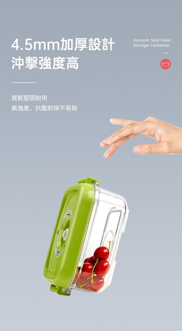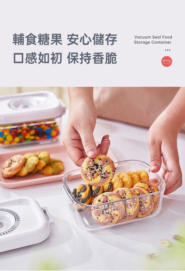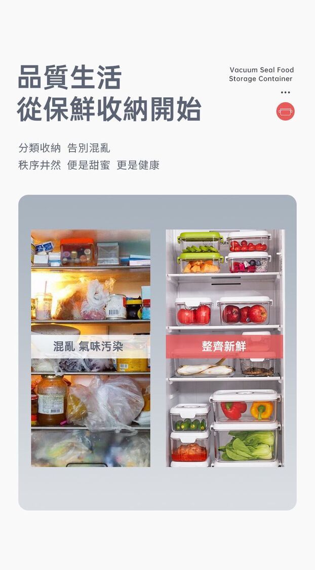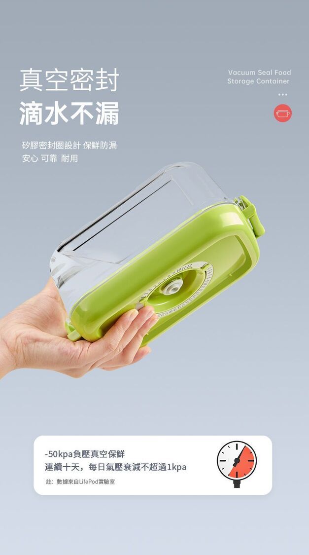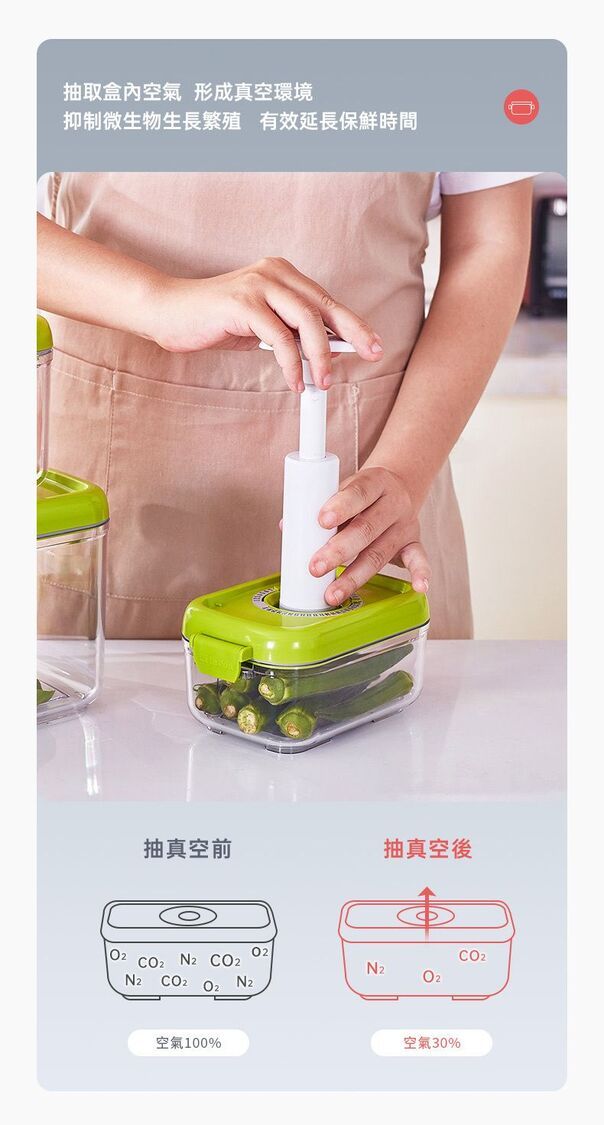 真空負壓保鮮,防潮防味,緩減氧化防霉,延長食材3~5倍保鮮時間。