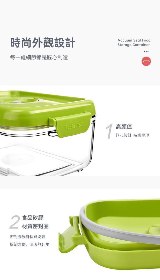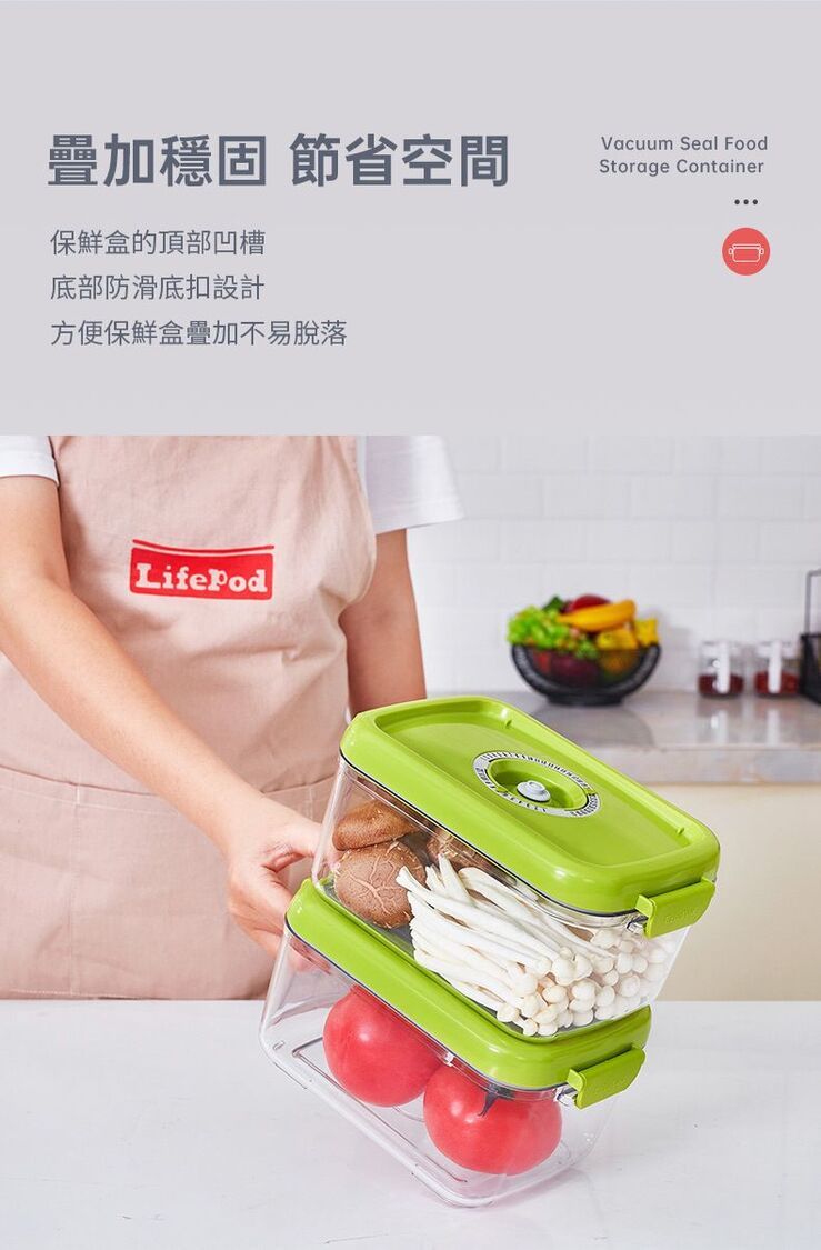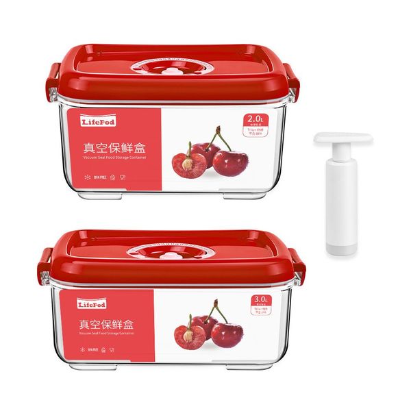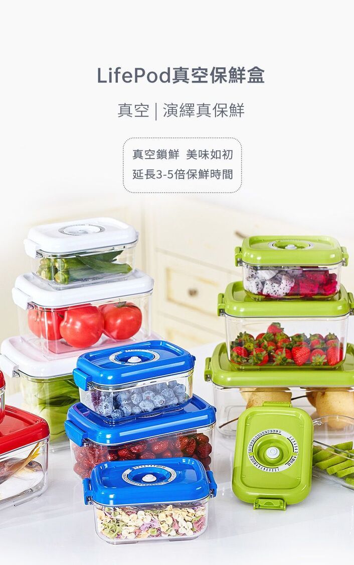 LifePod-抽真空保鮮盒2L+3L贈送手動抽氣泵 透明Tritan材質食物盒收納盒 冰箱蔬果儲物盒
