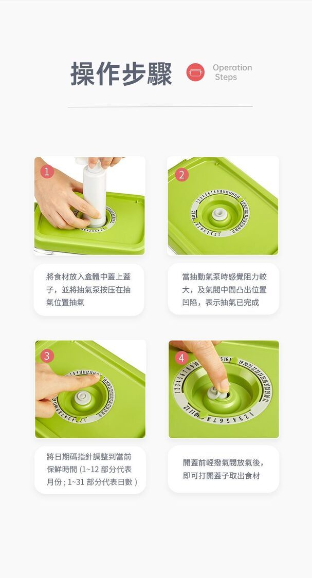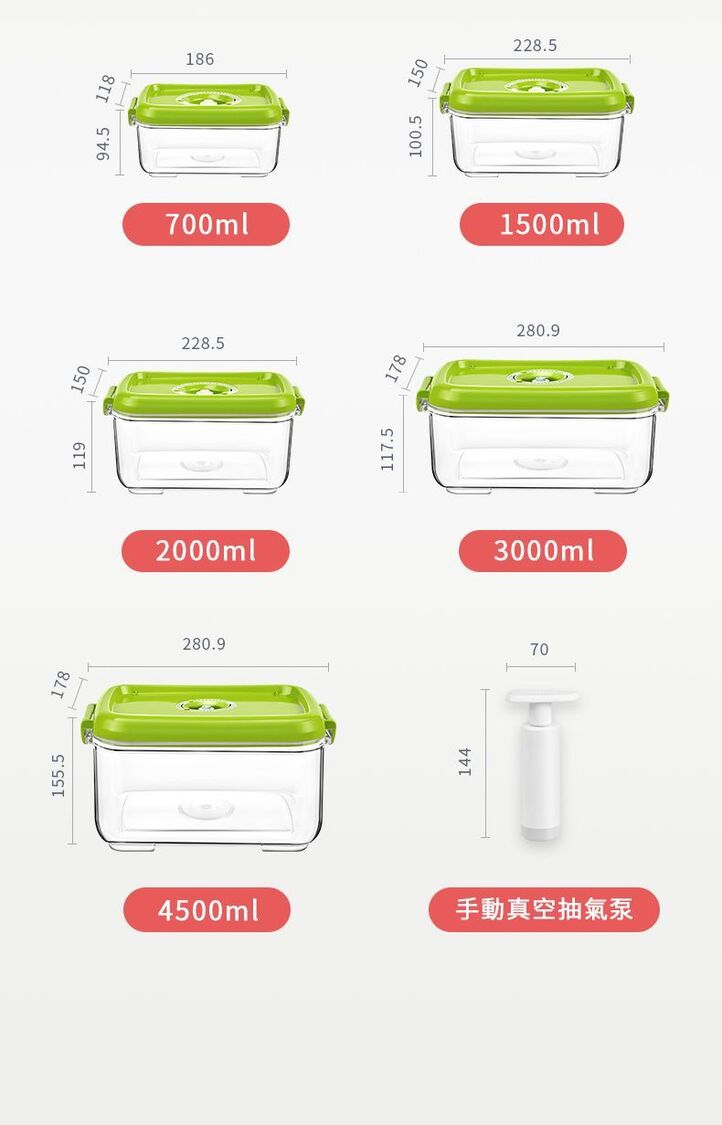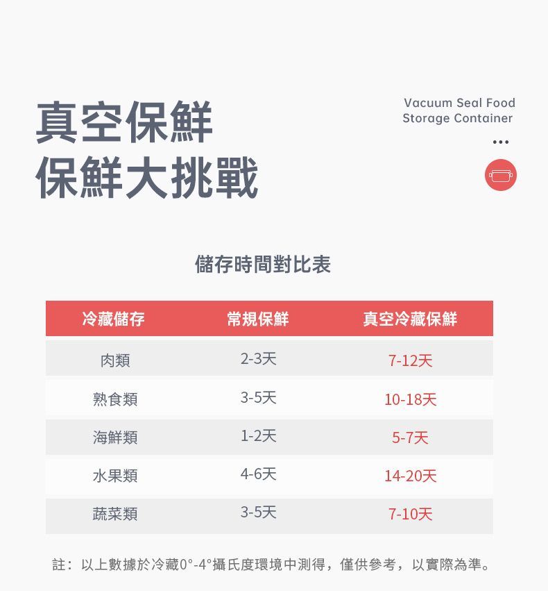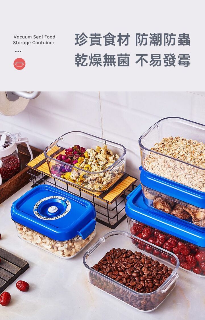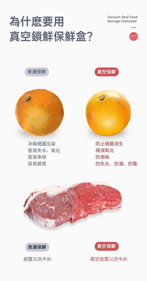 真空負壓保鮮,防潮防味,緩減氧化防霉,延長食材3~5倍保鮮時間。