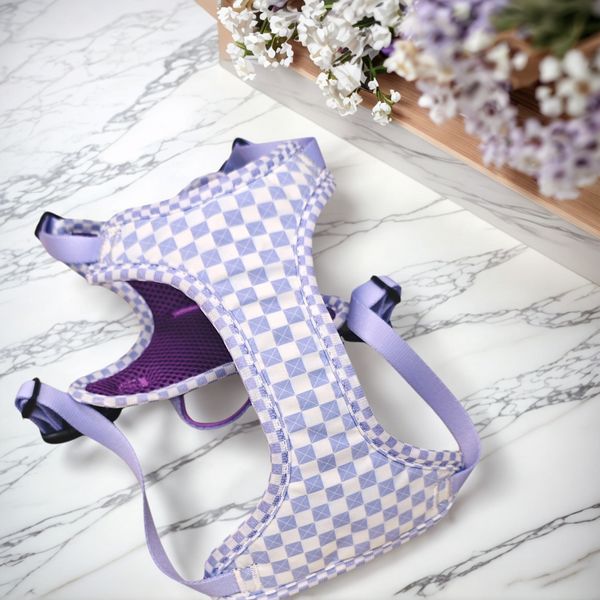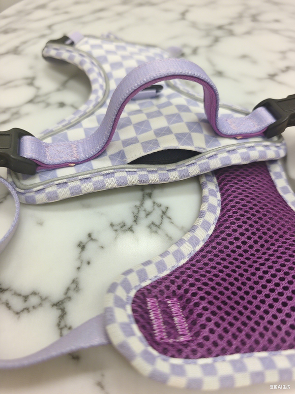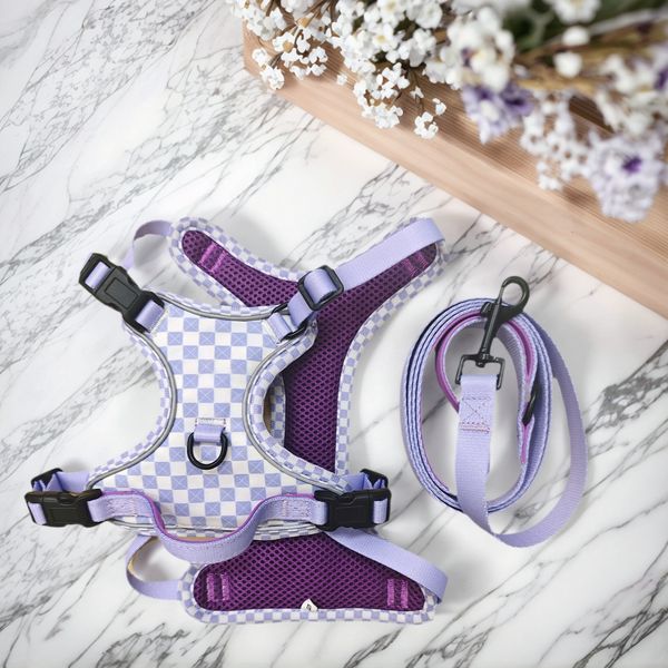 【輕便透氣】淡紫格仔狗狗胸背帶 牽繩套裝 專為細犬而設 可放GPS追踪器