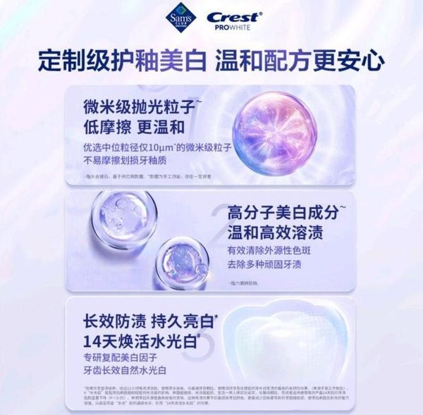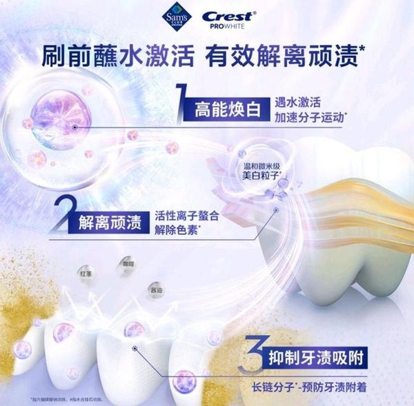 ✅ 順豐速發-原裝原封-山姆直購 ✅本店仲有超多山姆人氣食品,快啲嚟睇睇啦! ·14天煥活水光白持續護釉美白力 ·刷前蘸水啟動有效解離頑漬 ·定制級護釉美白溫和配方更安心