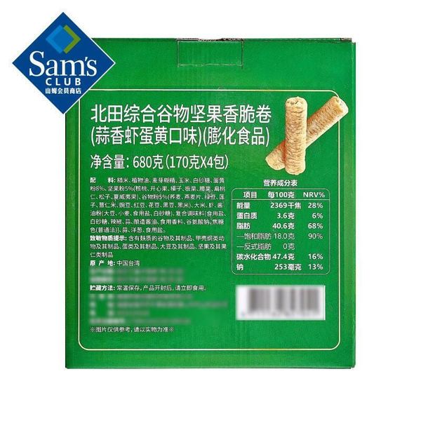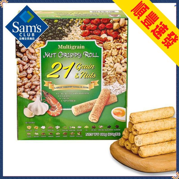 Member's Mark-山姆會員商店 綜合穀物堅果香脆卷(蒜香蝦蛋黃口味)(膨化食品)680g 平行進口