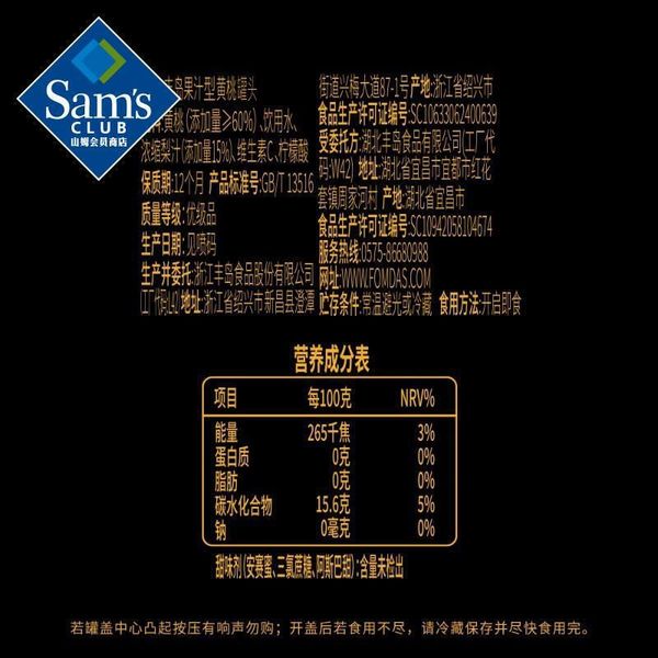 Member's Mark-山姆會員商店 豐島 果汁型黃桃罐頭1.8kg 平行進口