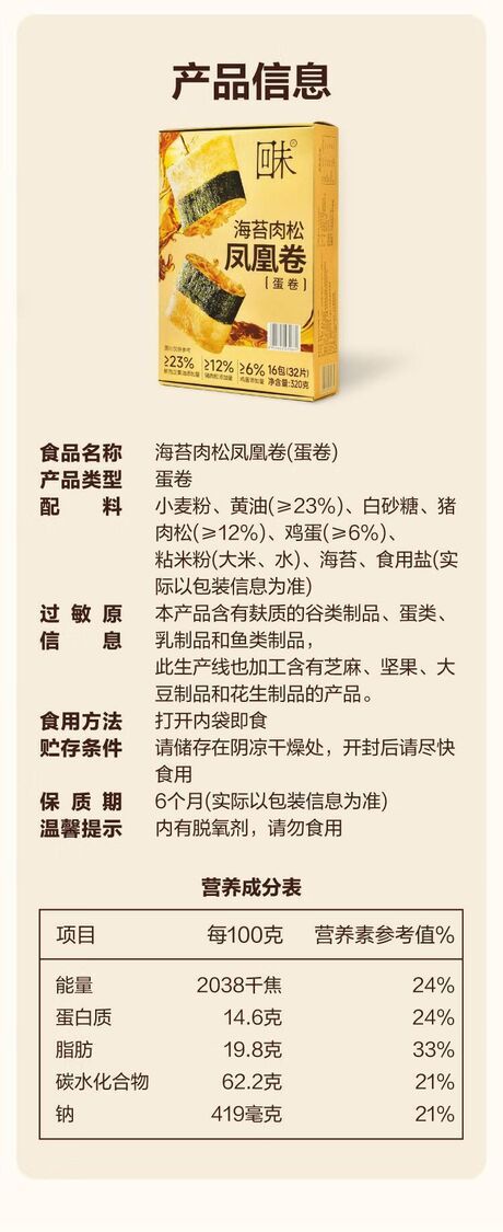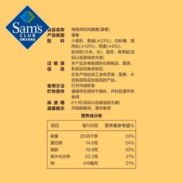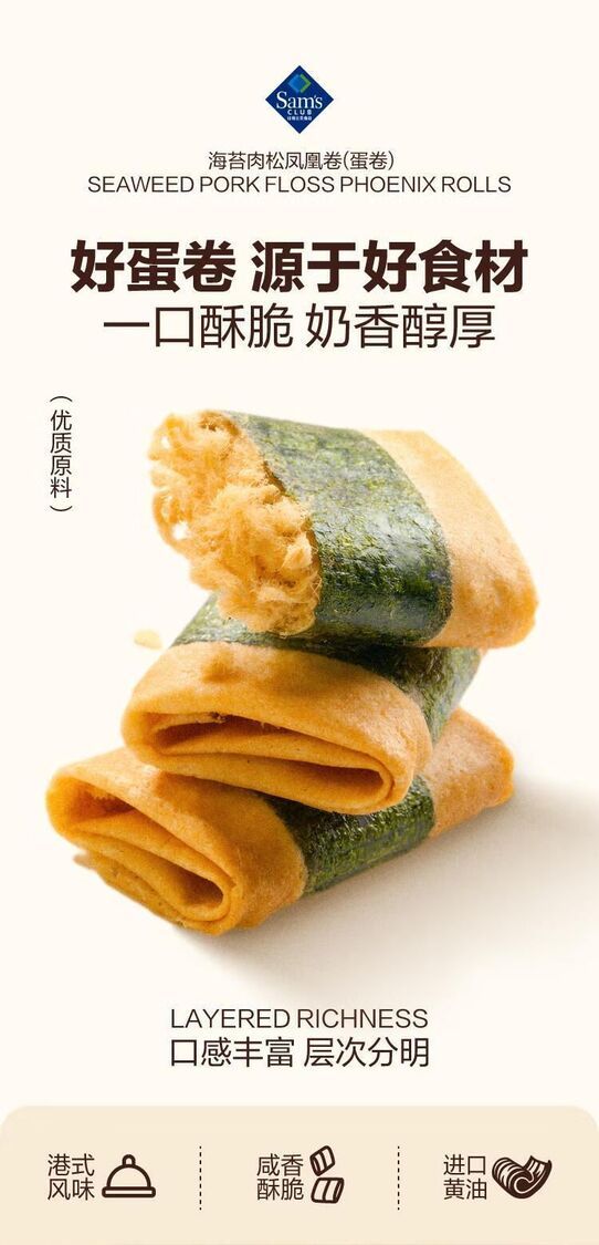 Member's Mark-山姆會員商店 回未 海苔肉鬆鳳凰卷(蛋捲)320g 平行進口