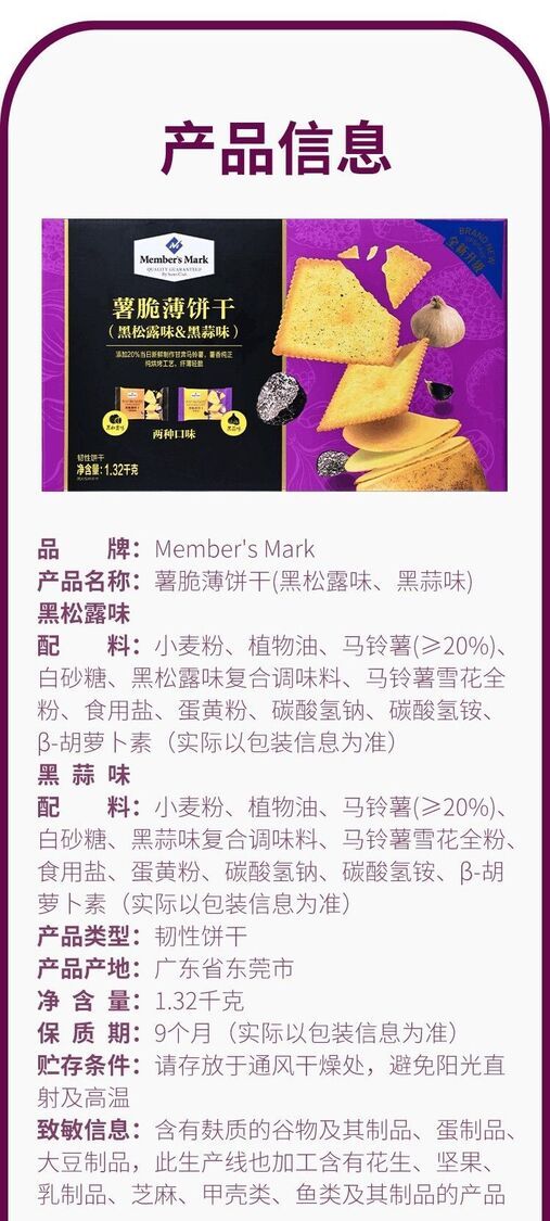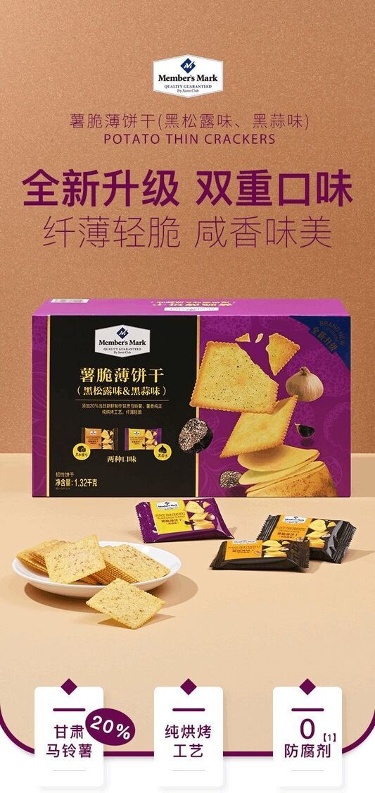 Member's Mark-山姆會員商店 Member's Mark薯脆薄餅乾1.32千克 平行進口