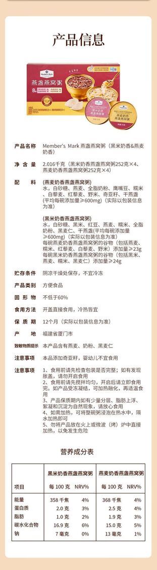 Member's Mark-山姆會員商店 Member's Mark 燕盞燕窩粥 2.016kg 平行進口