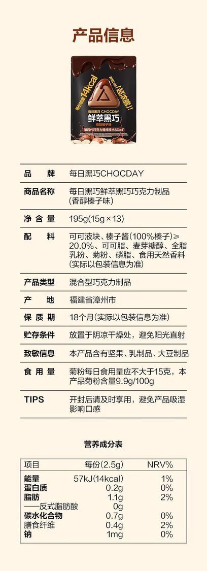 Member's Mark-山姆會員商店 Member's Mark 每日黑巧鮮萃黑巧克力製品(香醇榛子味)195g(15g*13) 平行進口