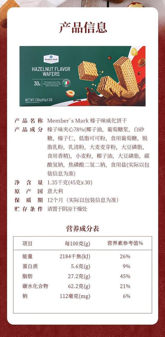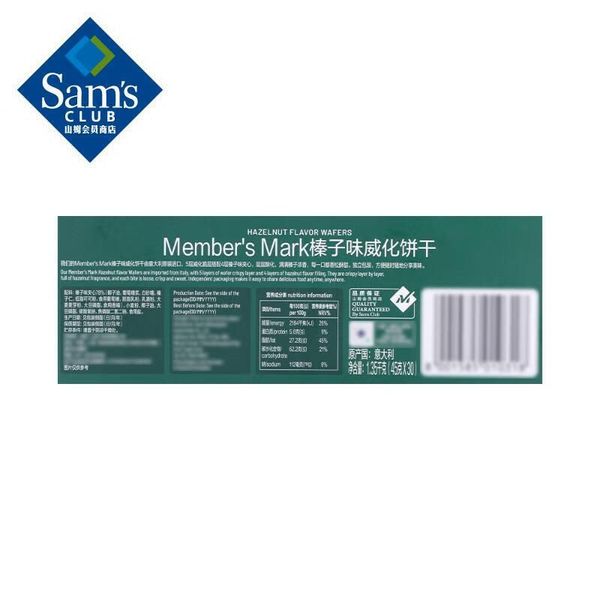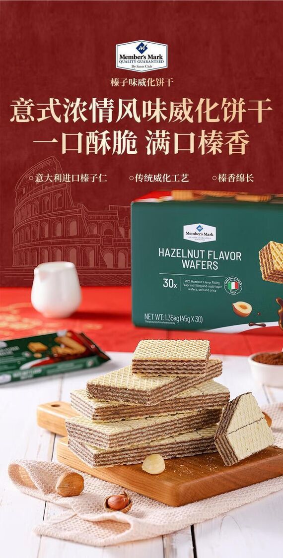 Member's Mark-山姆會員商店 Member's Mark 榛子味威化餅乾1.35kg(45g*30) 平行進口
