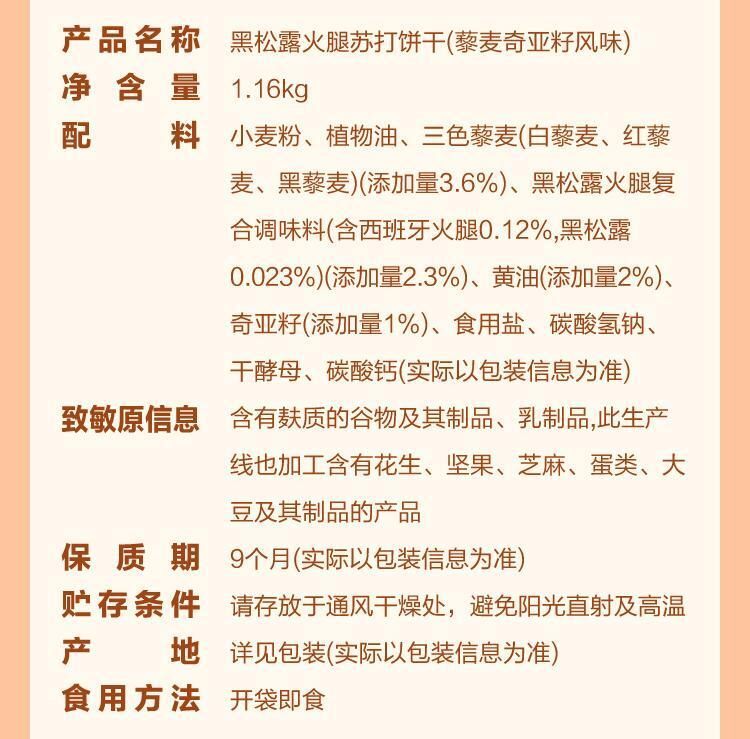 Member's Mark-山姆會員商店 Tafe黑松露火腿蘇打餅乾(藜麥奇亞籽風味)1.16kg 平行進口
