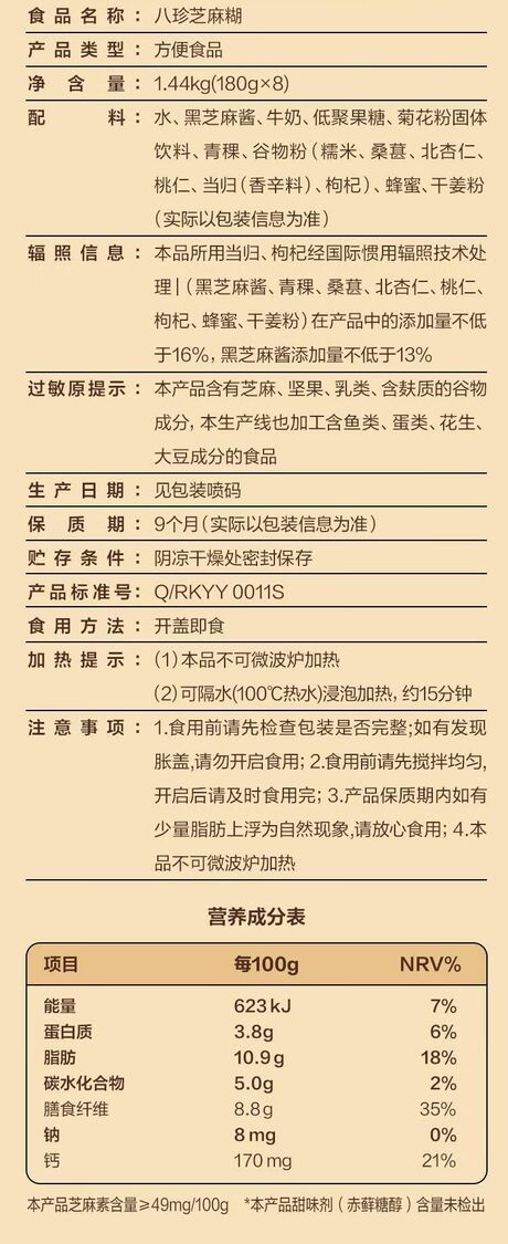 Member's Mark-山姆會員商店 五穀磨房八珍芝麻糊1440g(8碗) 平行進口