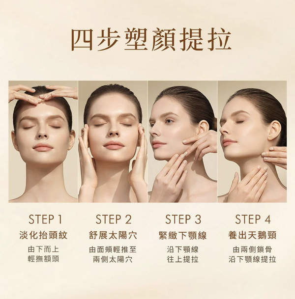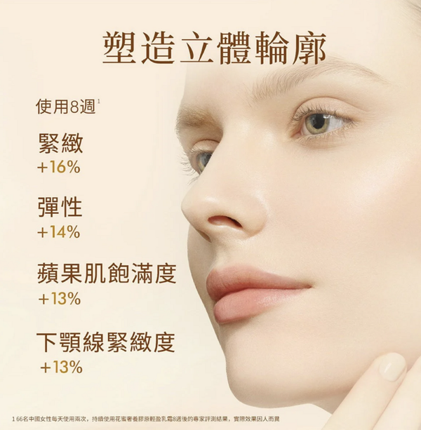 2. 早上妝前適量使用使底妝更貼服,達至日間滋潤。晚上可以配搭按摩手法,由下至上,由内到外,提拉養膚。