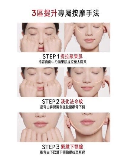 【配合按摩手法】想效果加乘,使用紅金面霜-時可搭配按摩手法以提升面部輪廓: