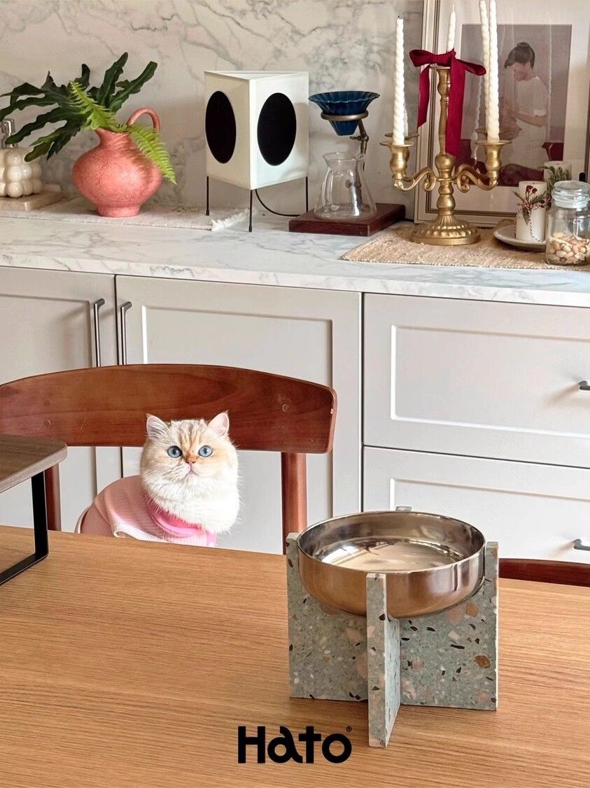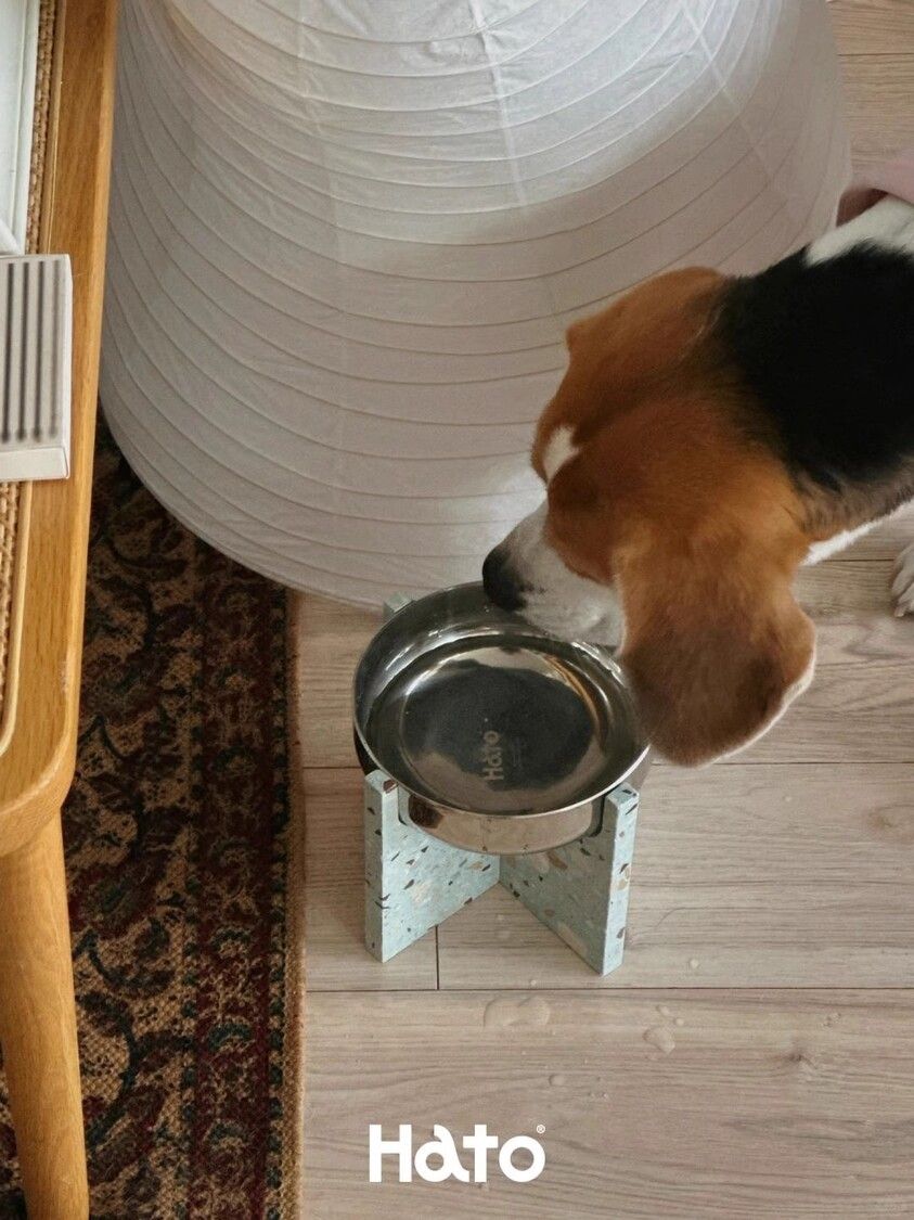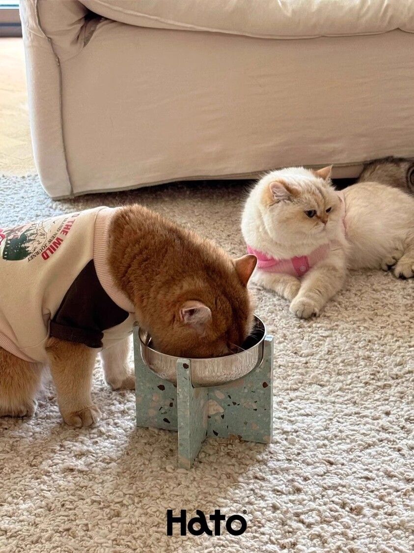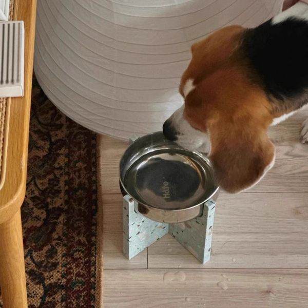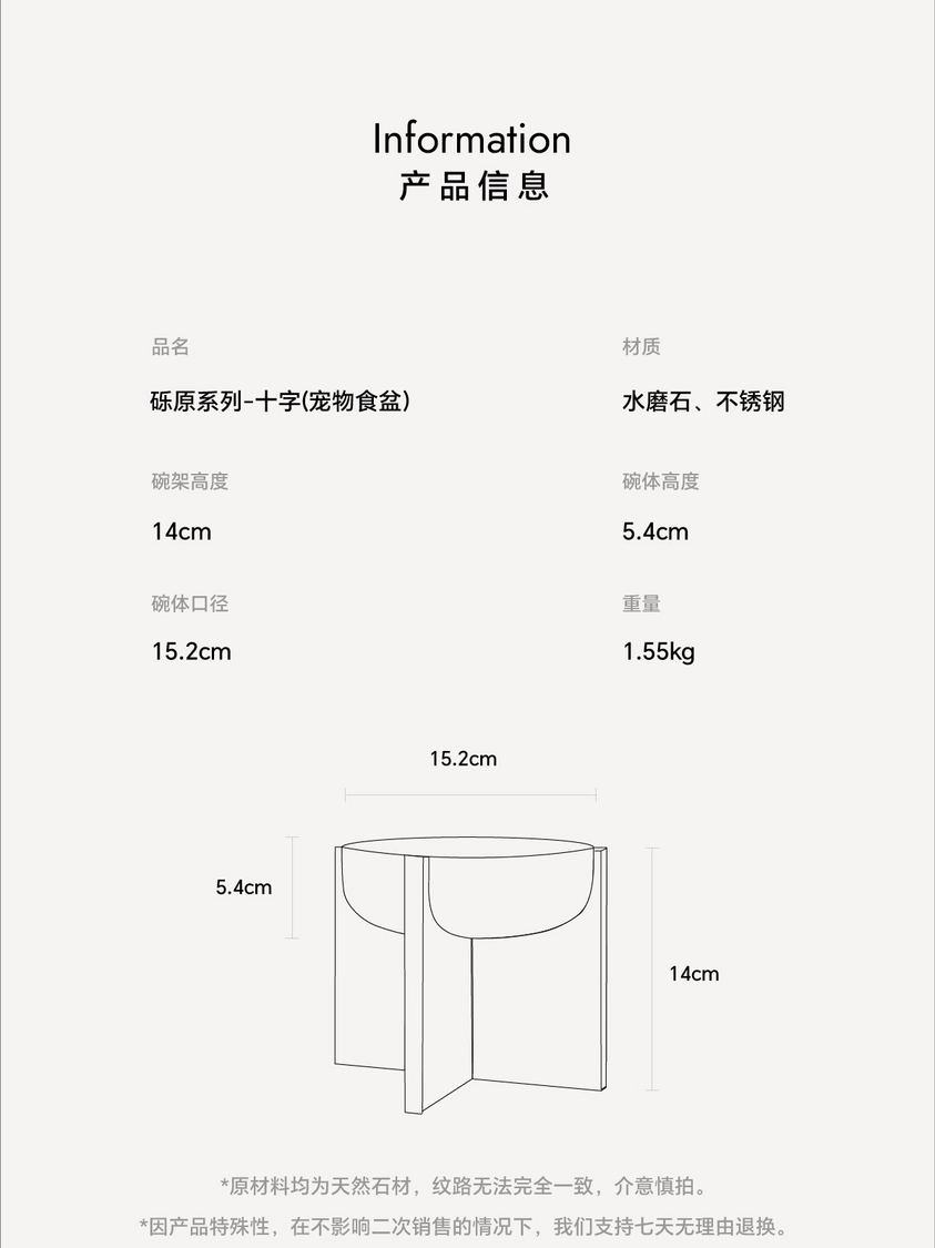 Hato十字寵物食盆貓狗通用水磨石不銹鋼寵物碗防打翻喝水碗禮物