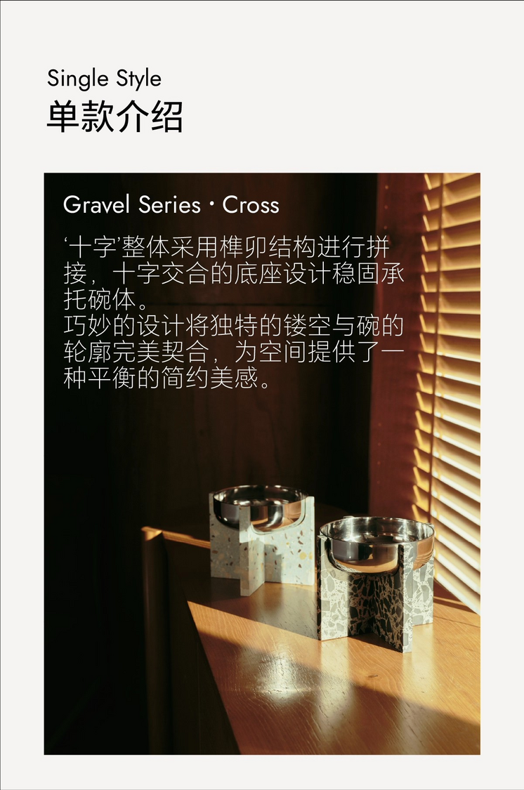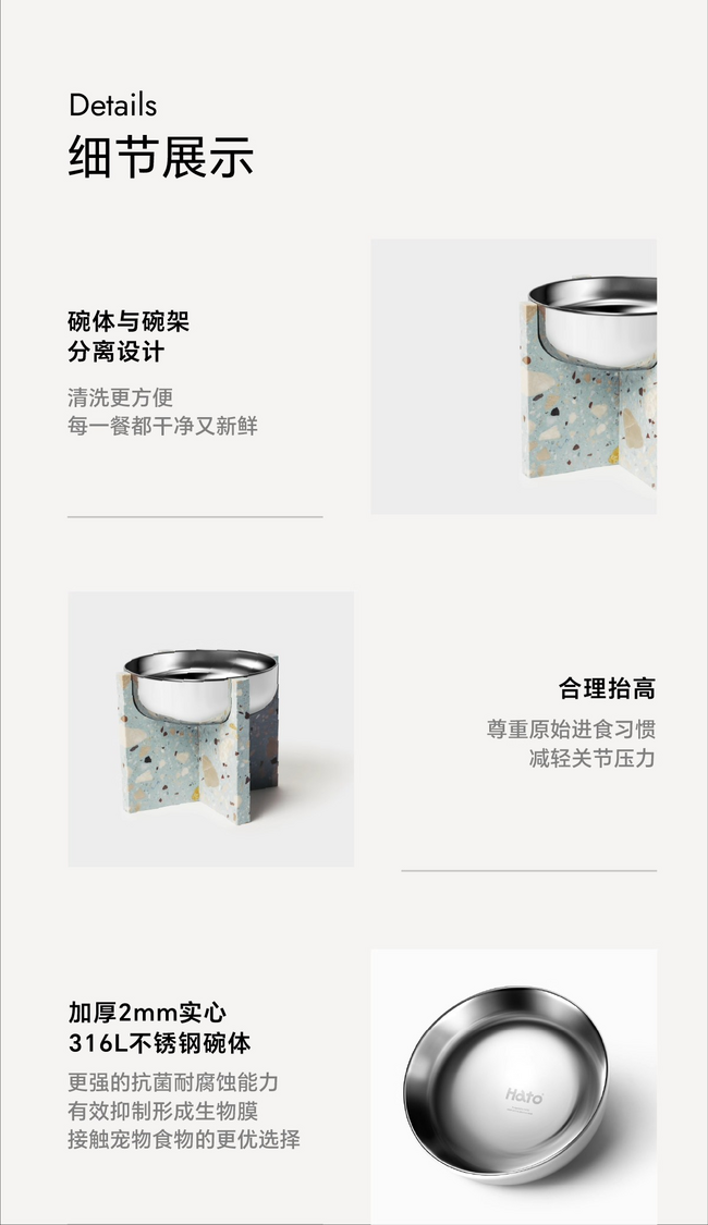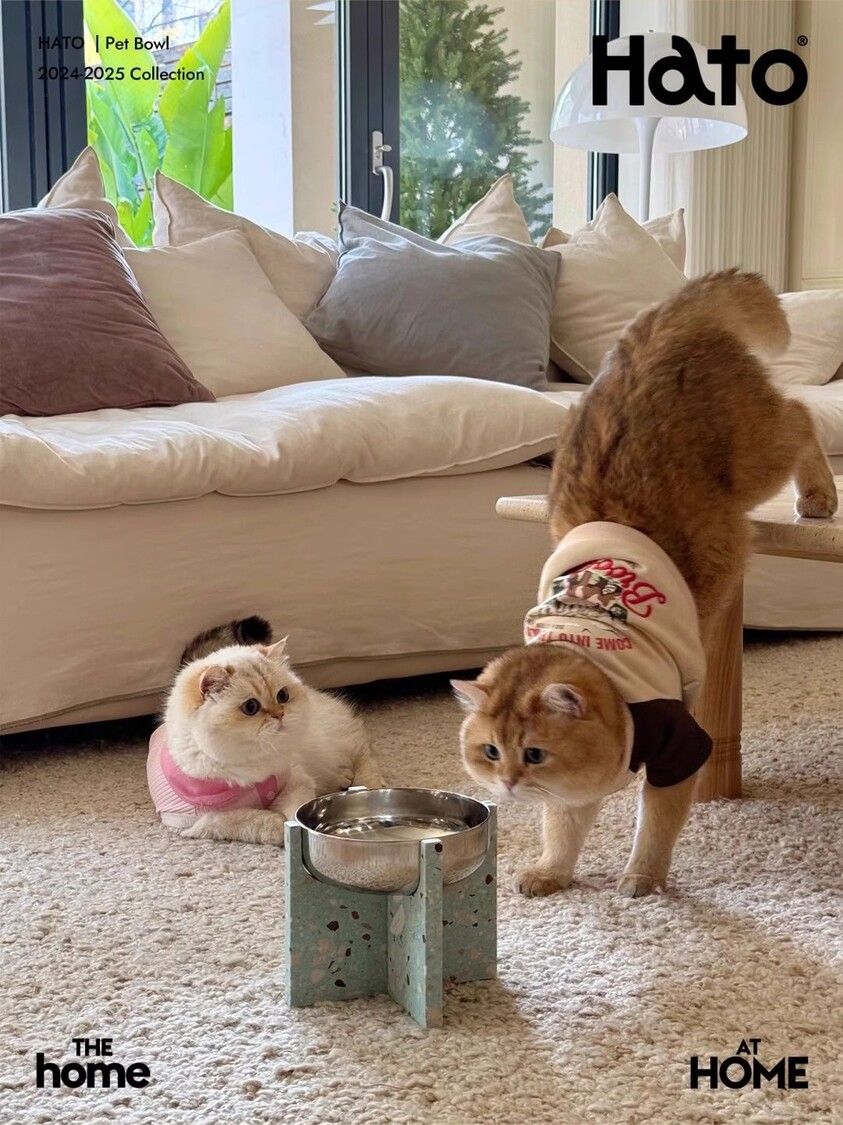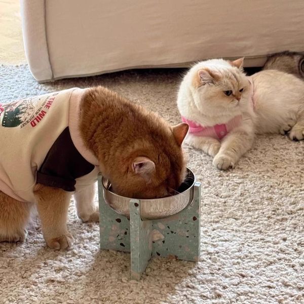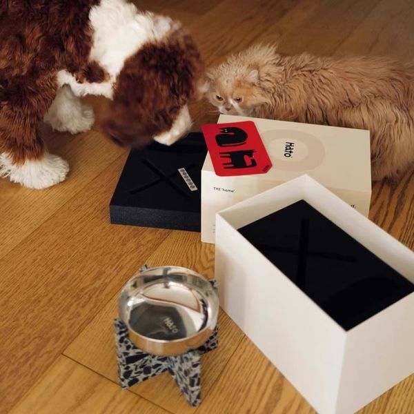 Hato十字寵物食盆貓狗通用水磨石不銹鋼寵物碗防打翻喝水碗禮物