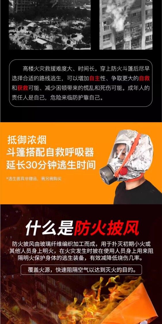 防火斗篷家用高層火災逃生披風衣雙層矽膠滅火毯耐高溫隔熱防護服