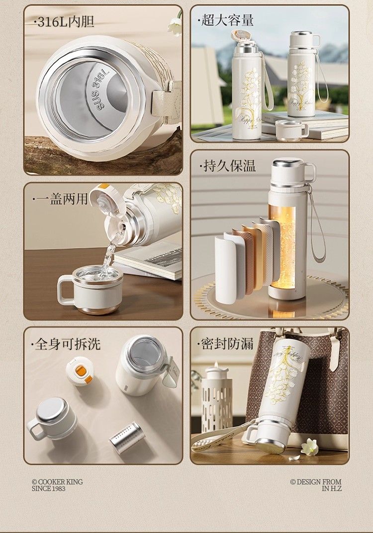炊大皇保溫杯大容量316L不銹鋼茶水分離成人學生男款泡茶大號水杯