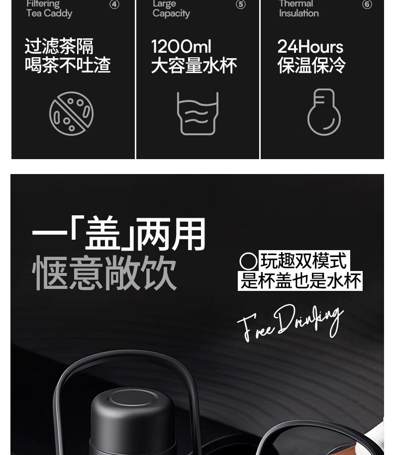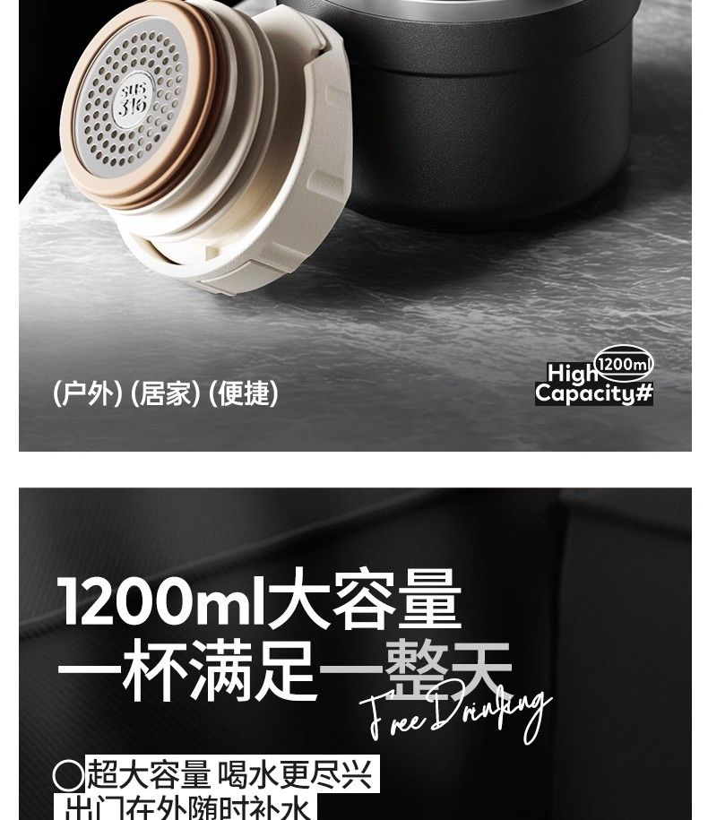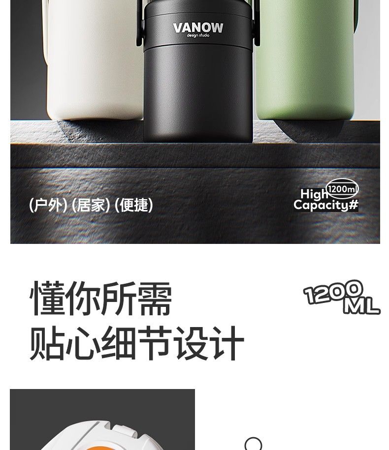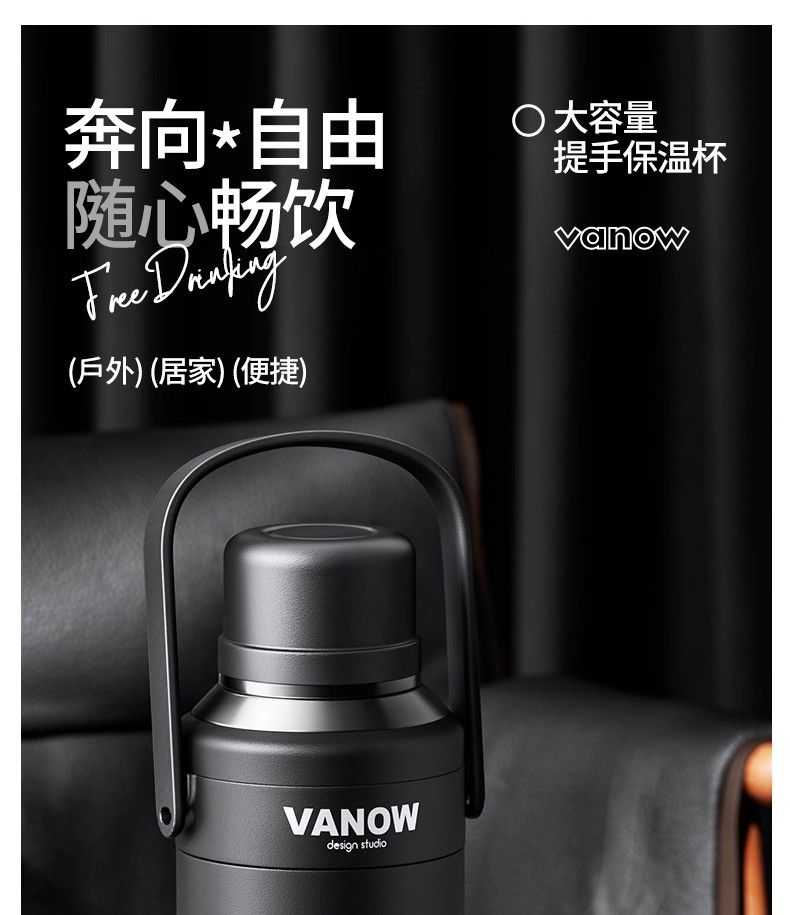 Vanow保溫杯大號大容量男生新款高端水壺戶外便攜運動水杯子