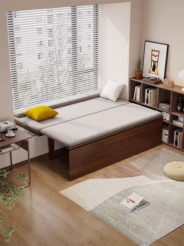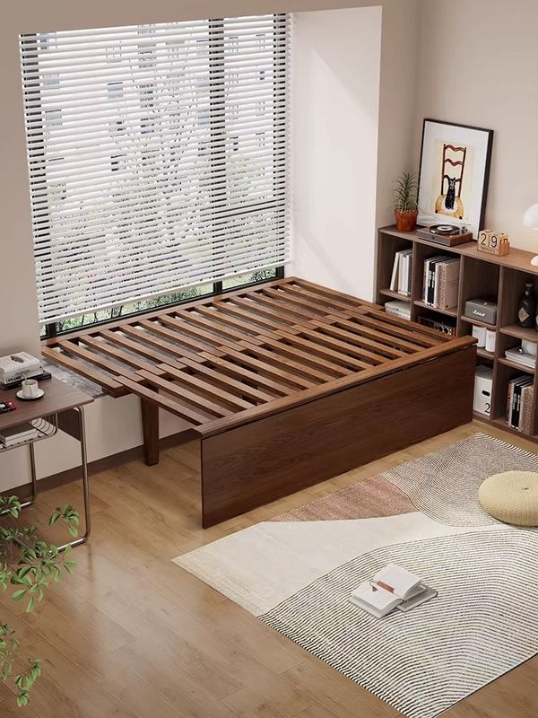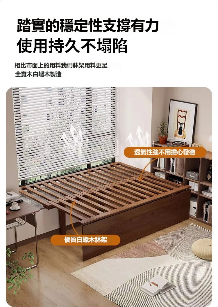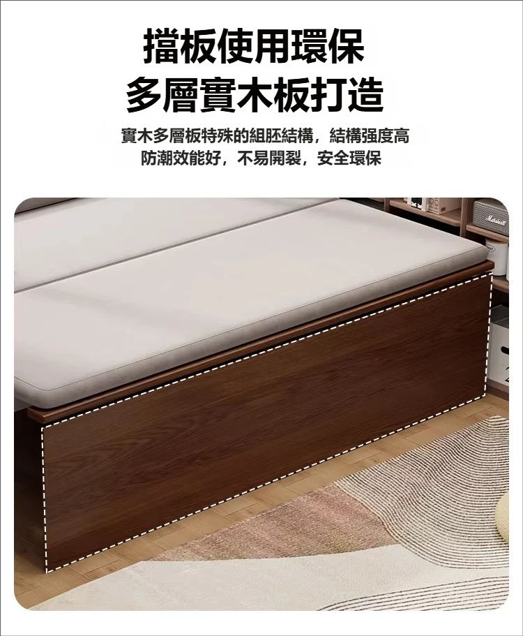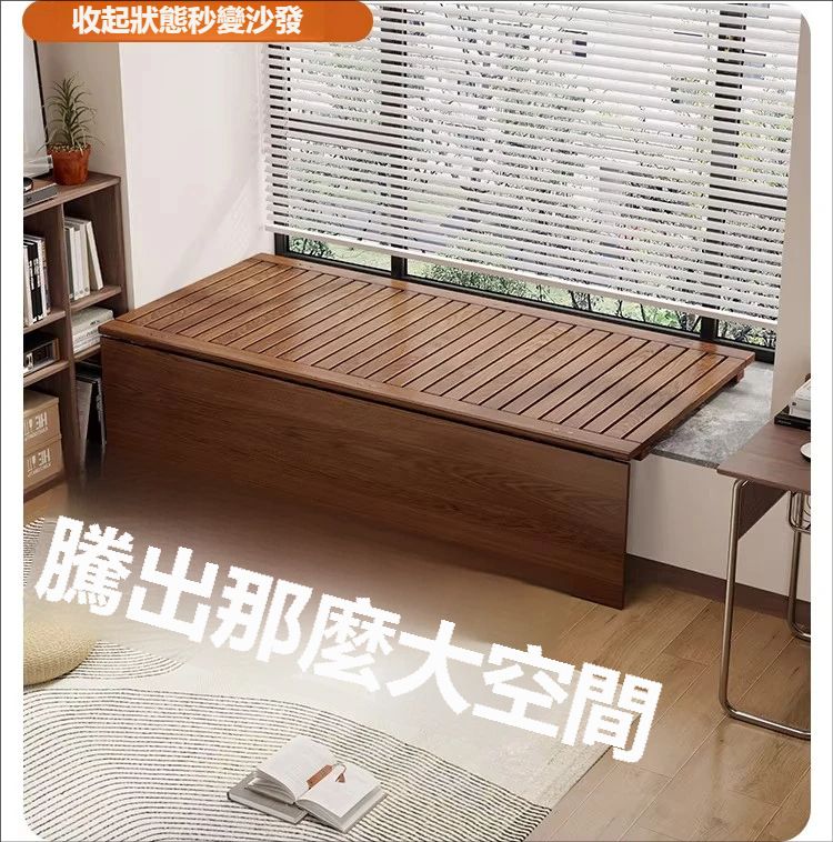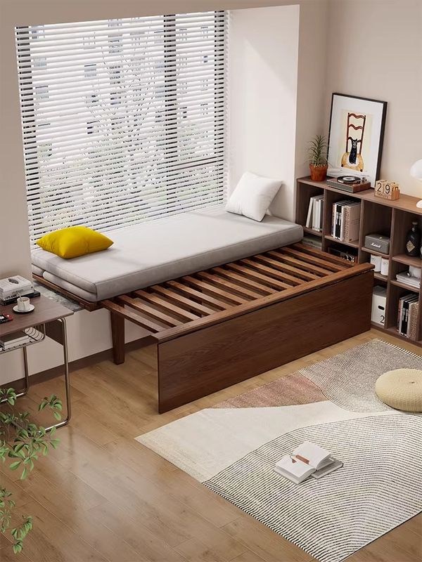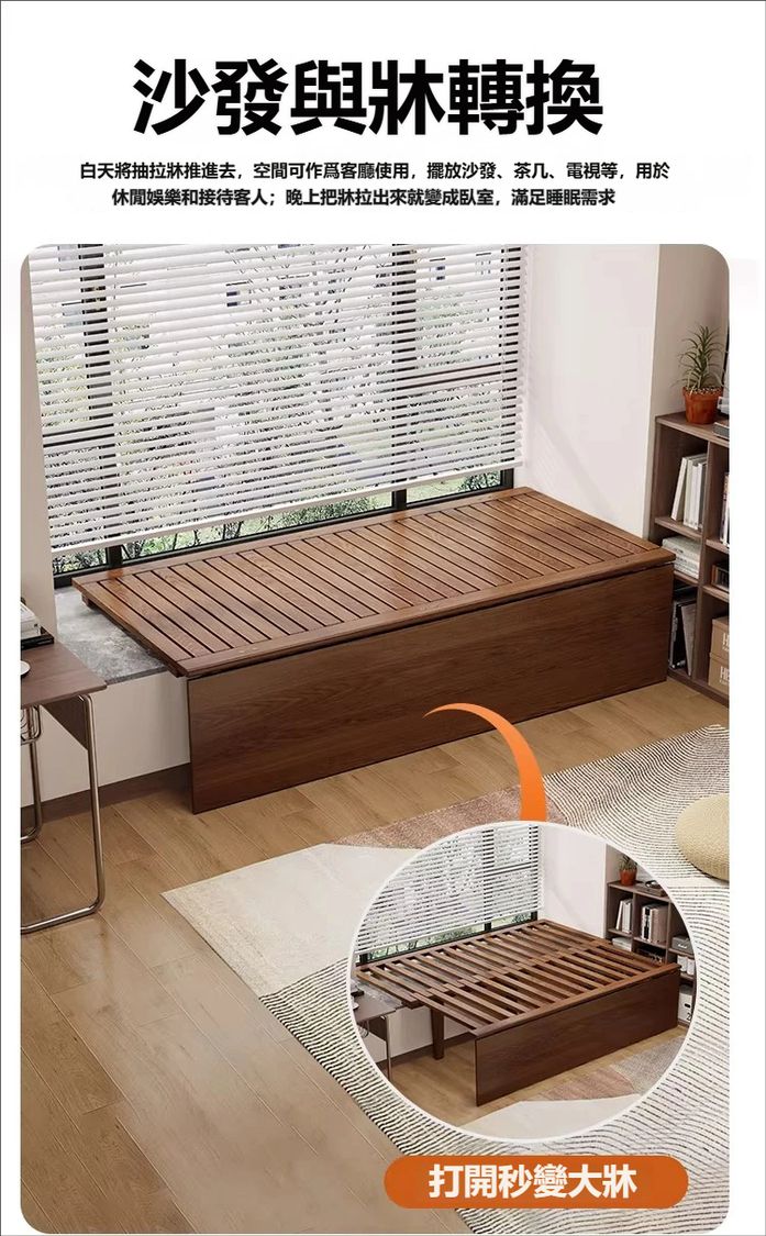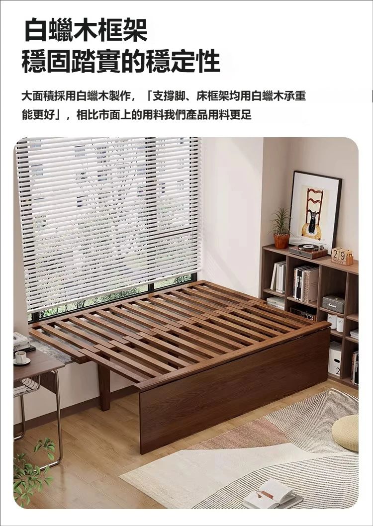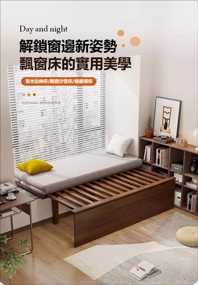 飄窗實木床帶擋板省空間小戶型臥室書房銜接飄窗改造拼接延伸床架