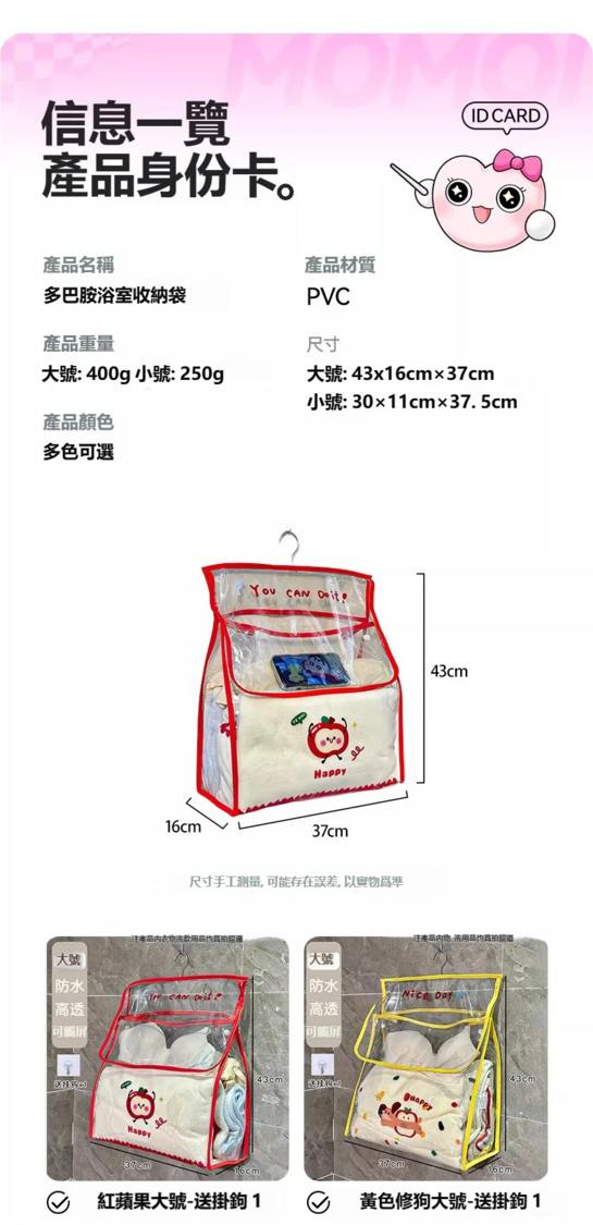 浴室防水袋衣物袋子大容量宿舍衛生間洗澡收納包放衣服掛衣袋神器