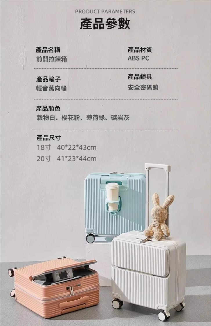 前開蓋行李箱20寸小型輕便登機箱多功能靜音萬向輪男女拉杆旅行箱