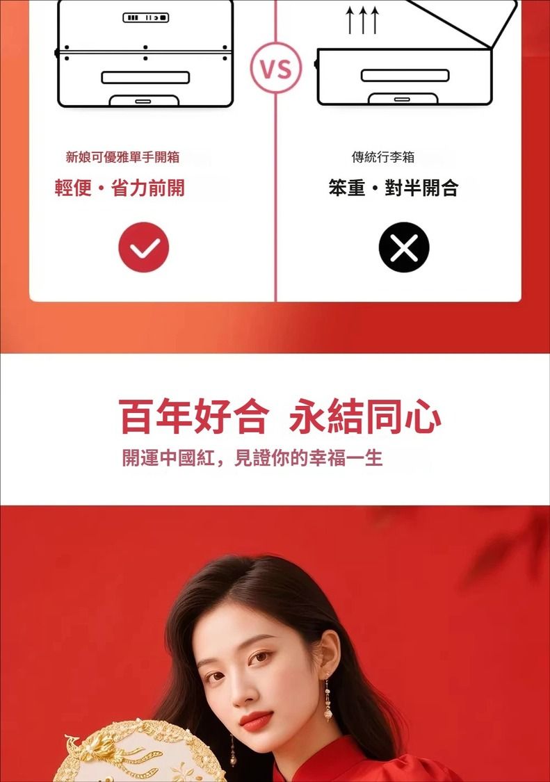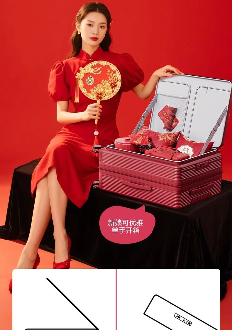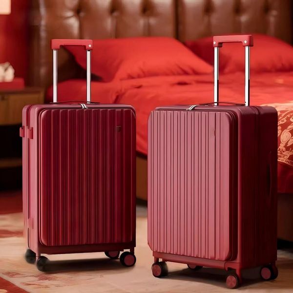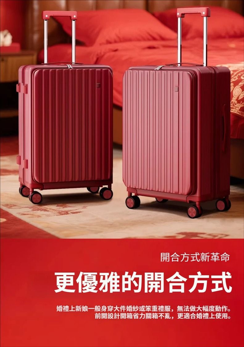 側開紅色行李箱結婚陪嫁嫁妝深倉大容量子母登機密碼旅行拉杆喜箱