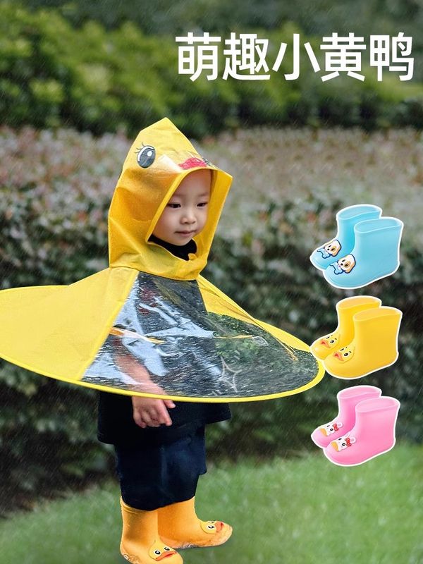 小黃鴨飛碟雨衣寶寶雨披雨靴兒童斗篷式雨傘帽幼稚園小孩套裝