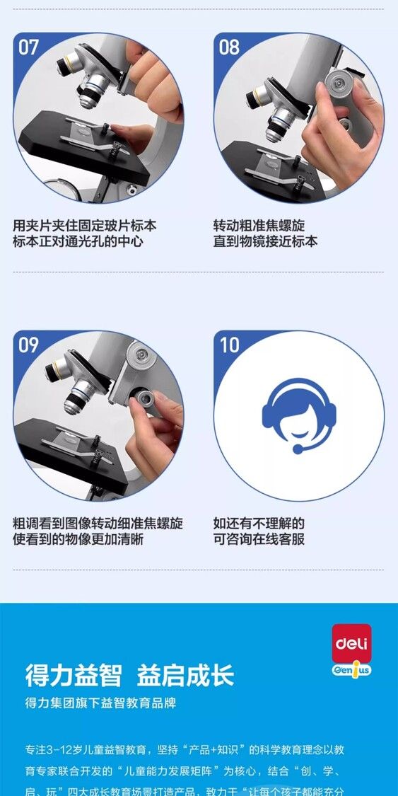 得力光學顯微鏡初中生小學生專用款生物課本同步兒童科學實驗室臺式專業級可看細胞