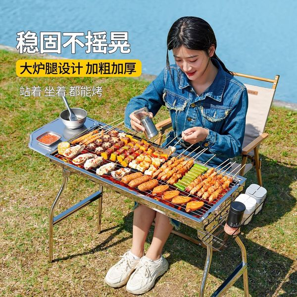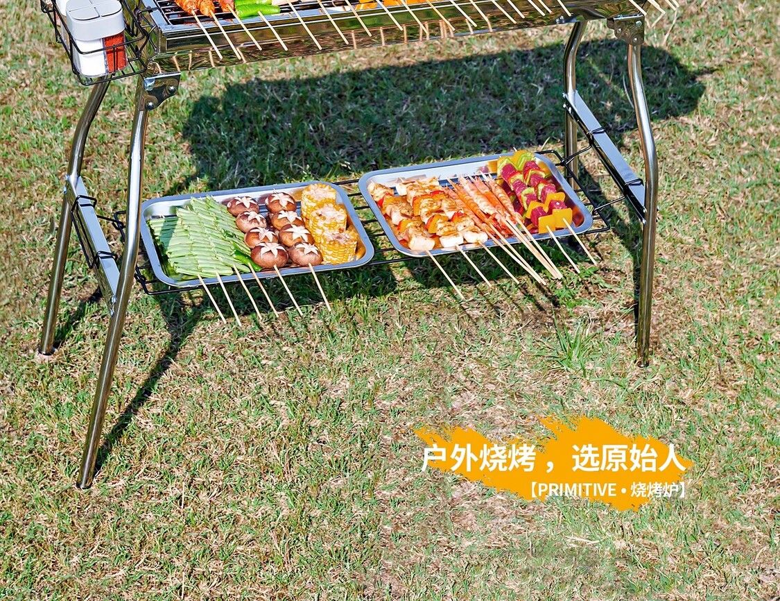 原始人燒烤爐子燒烤架家用戶外折疊便攜新款加厚不銹鋼烤肉爐架子