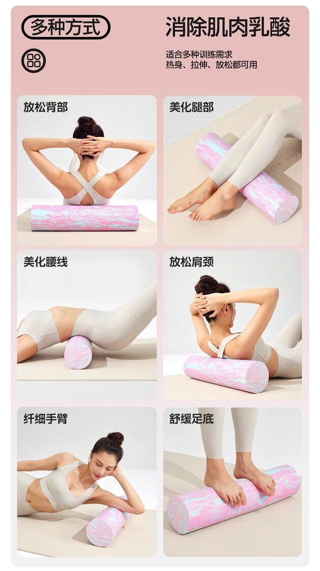 粉混色瑜伽柱45CM+按摩棒木槿紫
