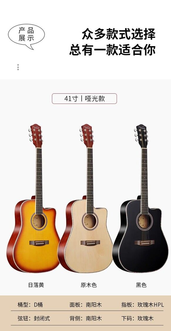 單板41寸民謠吉他初學者入門練習雲杉木吉它男女生新手琴樂器