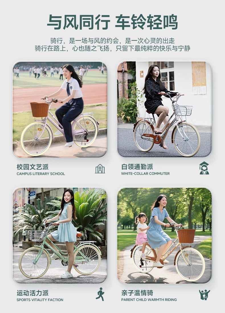 自行車女款成人新型輕便變速復古通勤上班代步單車26寸大學生女士