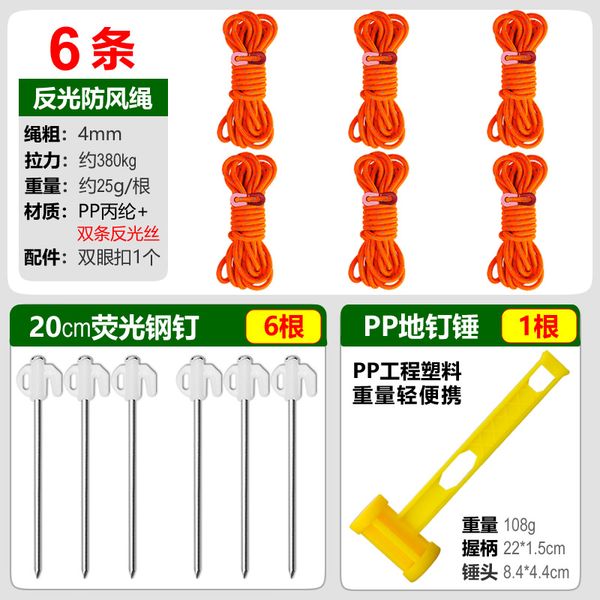 桔紅4mm【6根】反光繩+螢光釘6根+小黃錘