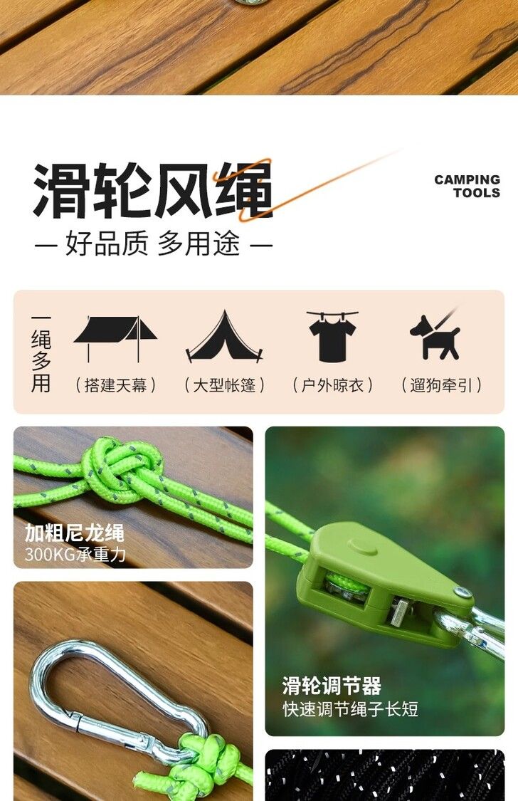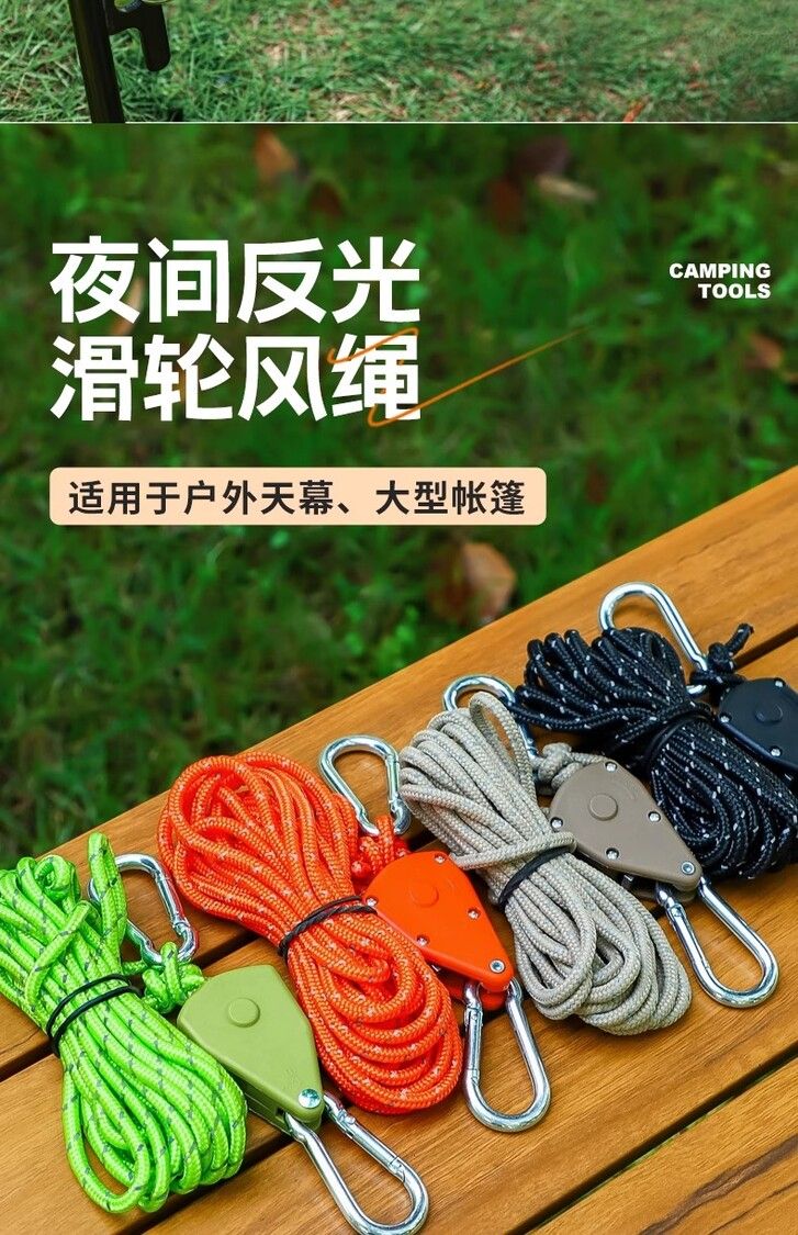4mm加粗風繩戶外天幕防風繩撐杆固定拉繩4米帳篷反光營繩調節繩子