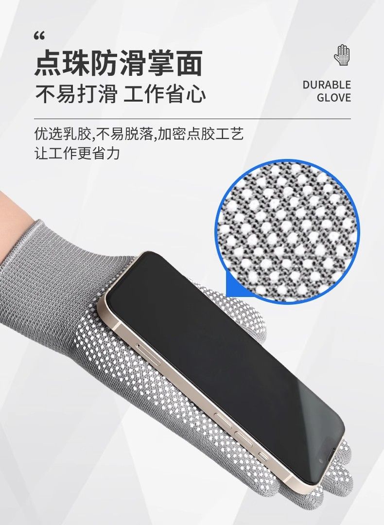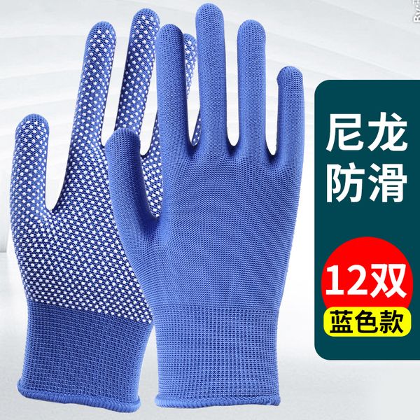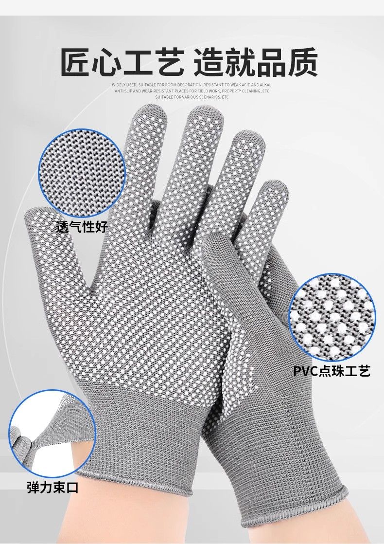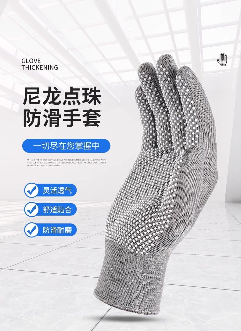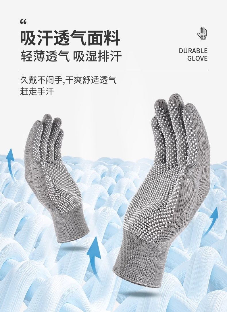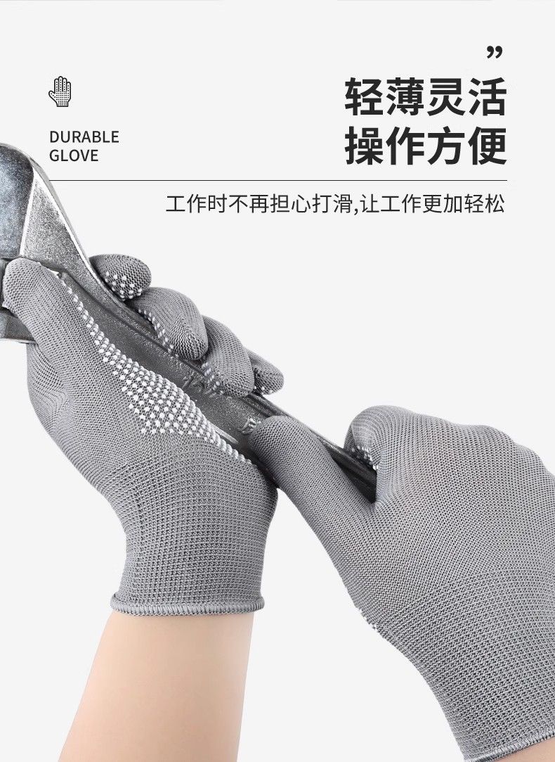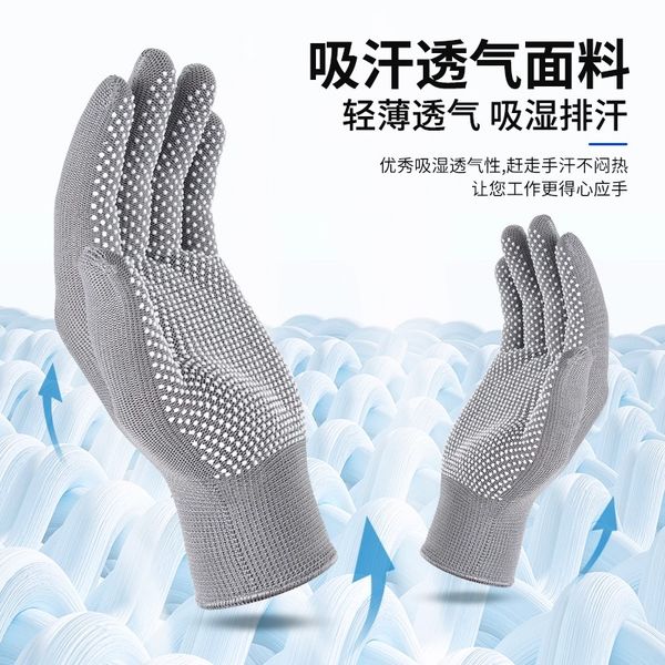 勞保手套薄款防滑尼龍點膠耐磨夏季幹活透氣防曬戶外工作搬運男女
