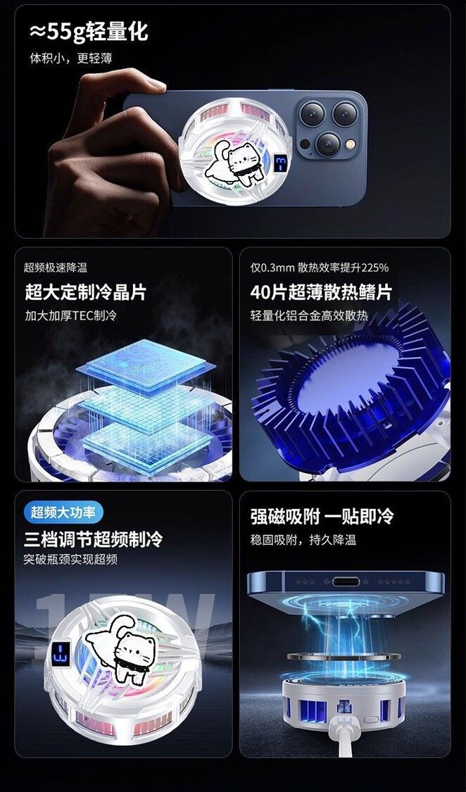 真結冰手機散熱器磁吸手機發燙半導體製冷降溫神器平板直播電競遊戲專用背夾散熱貼可愛新款