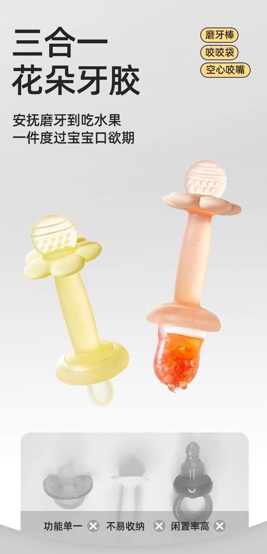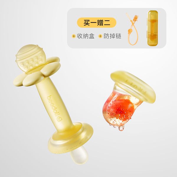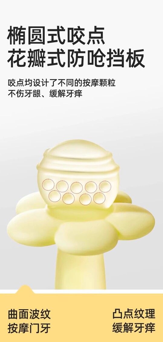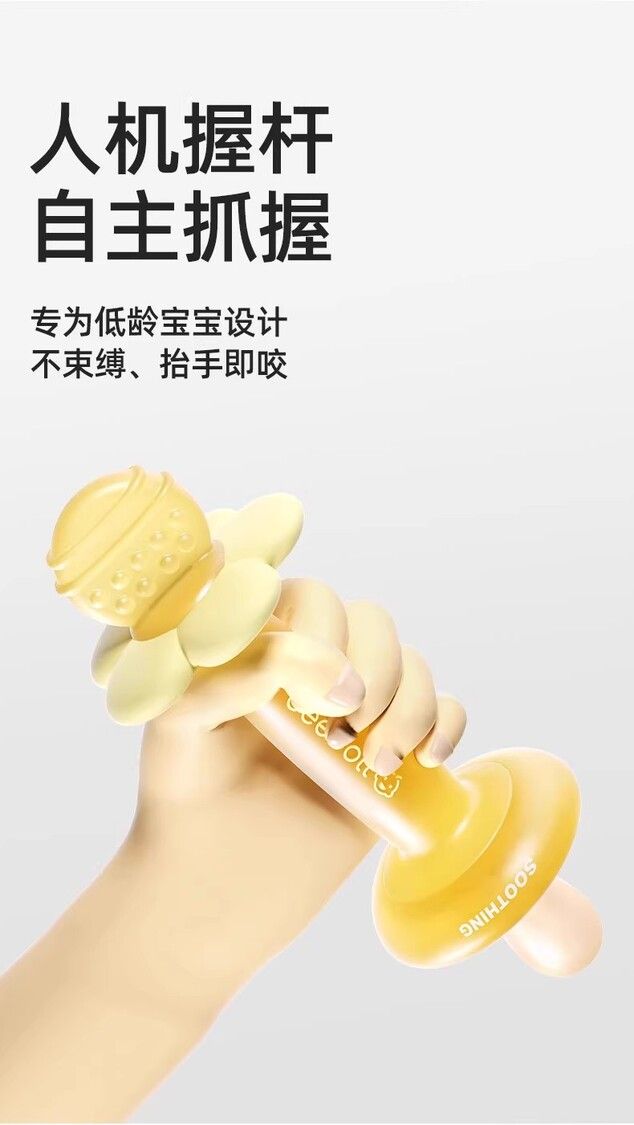 【趣成長花朵牙膠】-橄欖黃(送收納盒+防掉鏈)