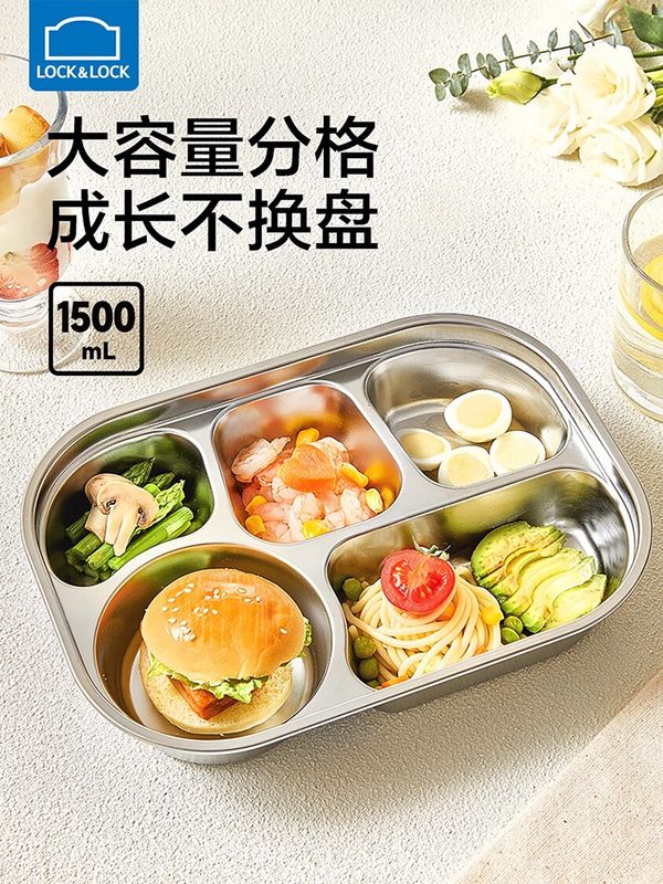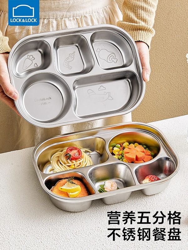 樂扣樂扣兒童餐盤分格316不銹鋼分餐盤幼稚園寶寶餐具家用吃飯盤