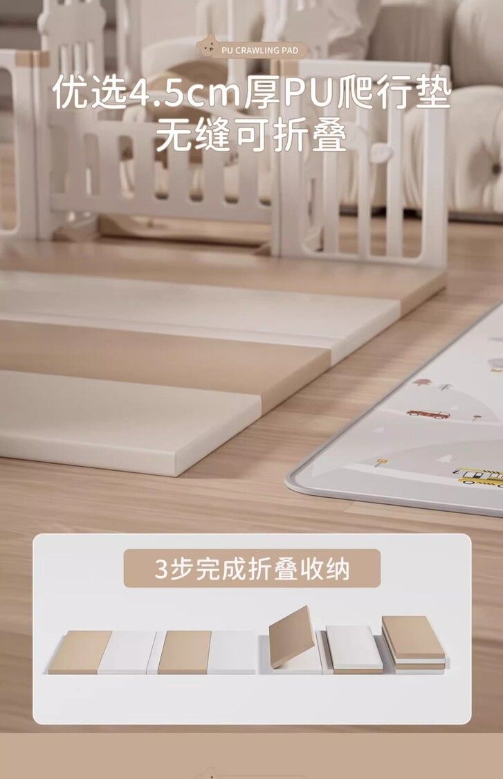 邁奇寶寶遊戲圍欄丨嬰兒室內防護欄丨兒童爬行墊護欄柵欄