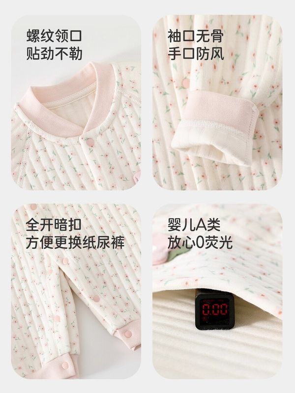 婧麒新生嬰兒連體衣秋冬小月齡寶寶夾棉衣服嬰幼兒外出服早秋睡衣