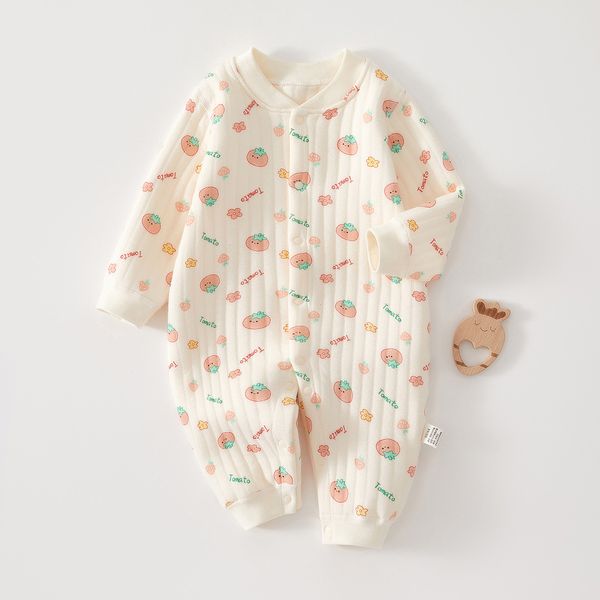 米-滿印番茄保暖連體衣