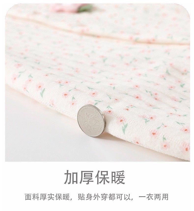 粉-滿印花朵保暖連體衣