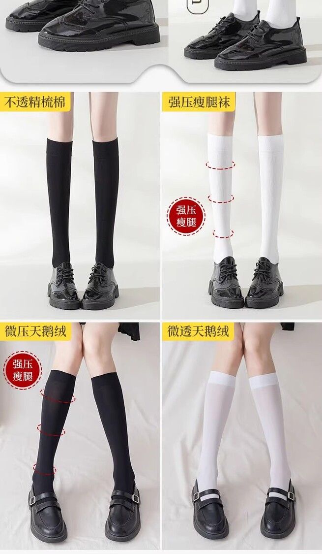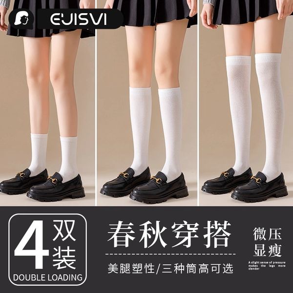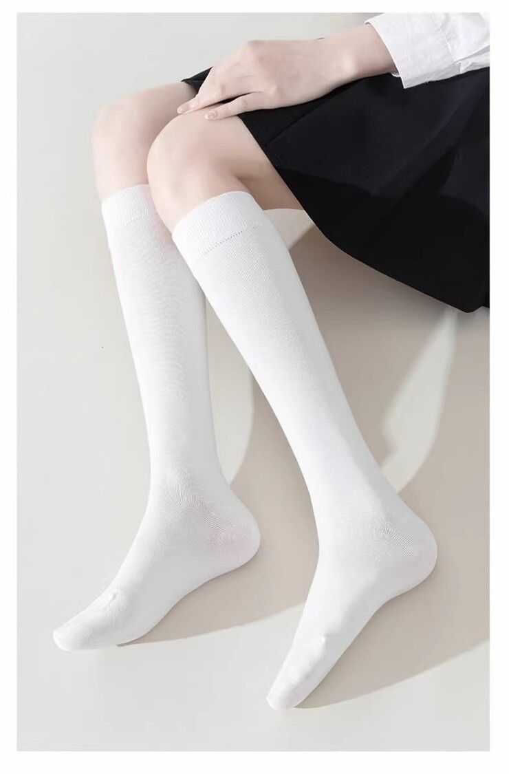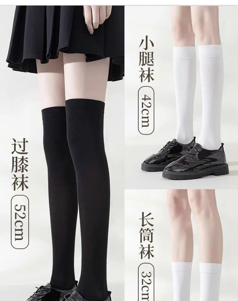 白色襪子女中筒襪春秋款純棉長筒過膝長襪樂福鞋jk小腿襪壓力瘦腿
