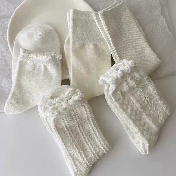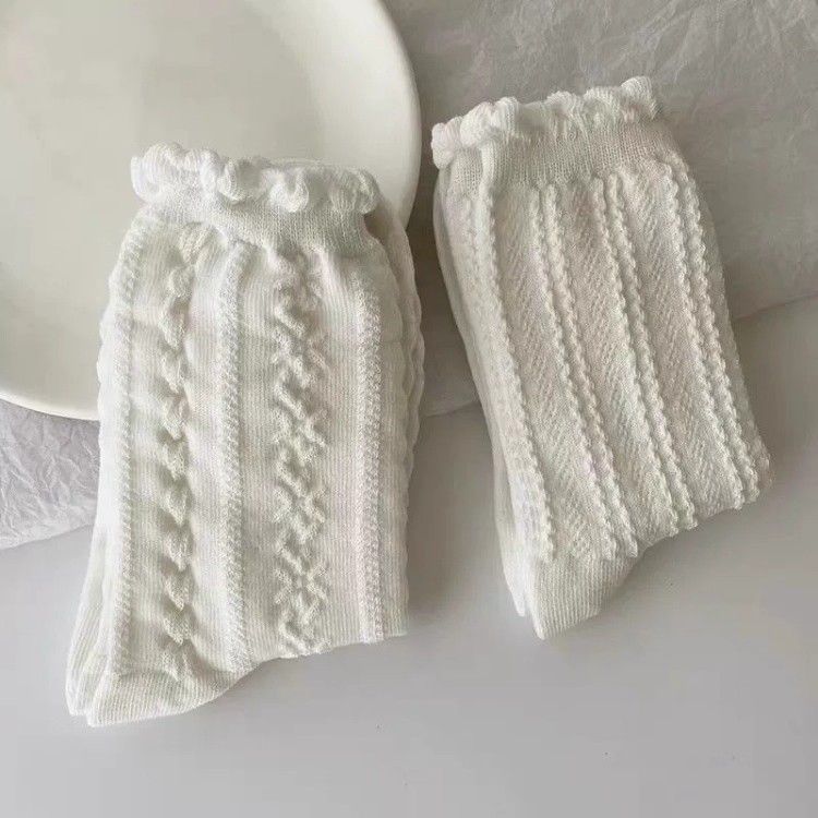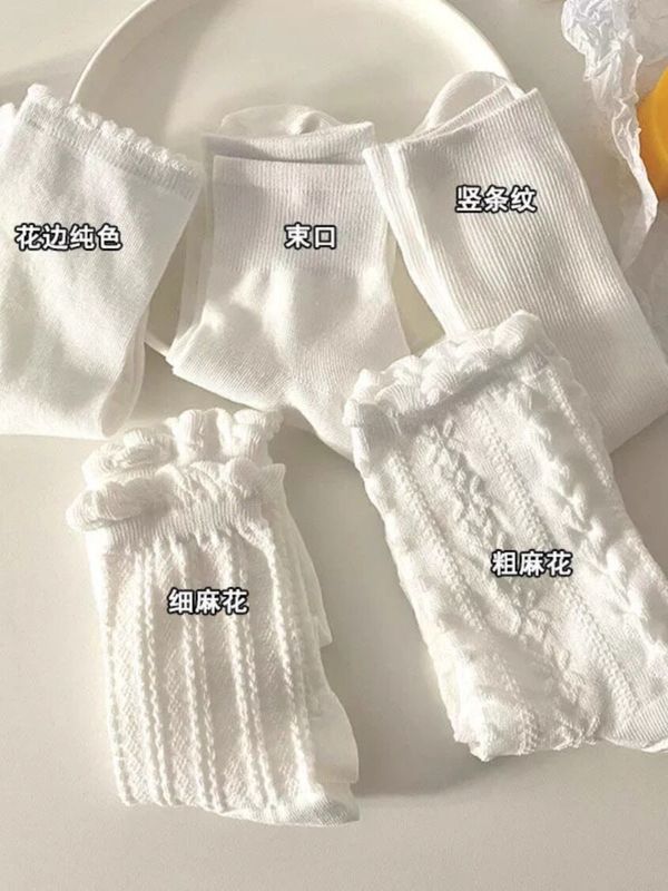 【3雙】花邊純色+束口+細麻花