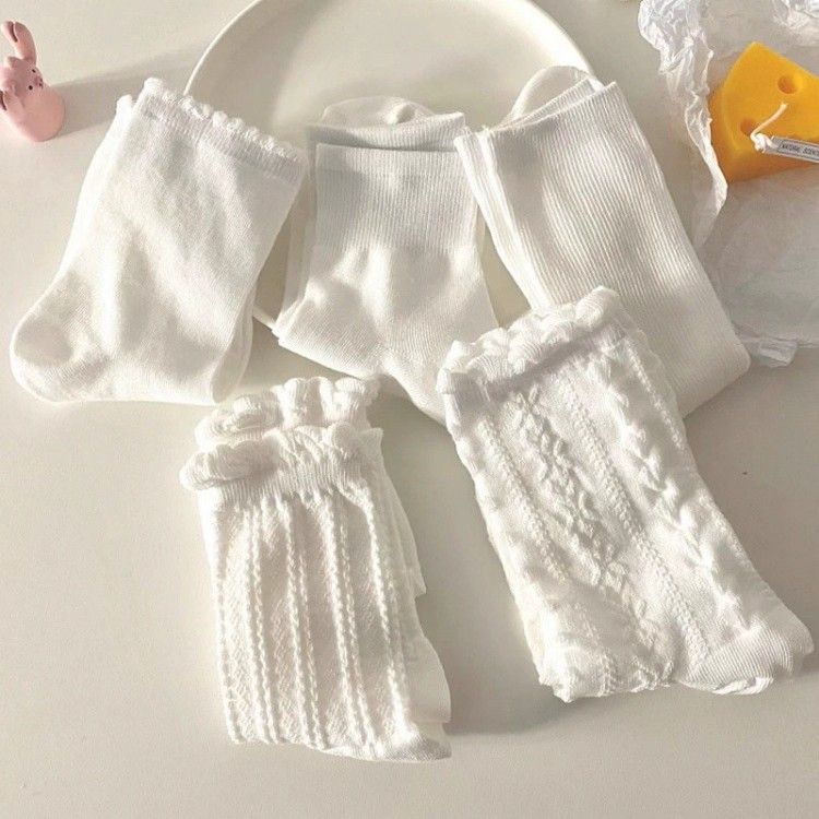 夏季日系可愛白色襪子ins潮薄款中筒jk制服堆堆襪泡泡口lolita女