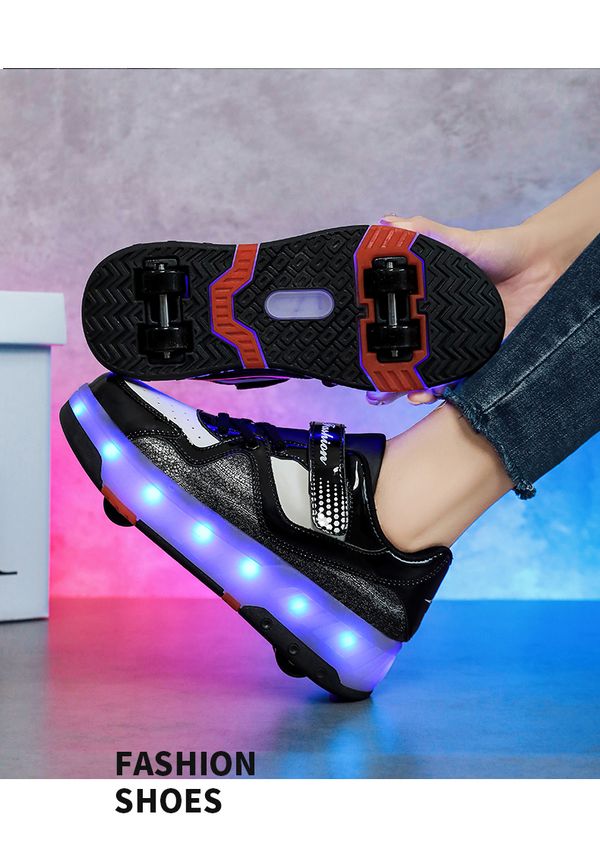 新品暴走鞋四轮初学者新手带灯充电款男童轮滑鞋女童带轮子运动鞋
