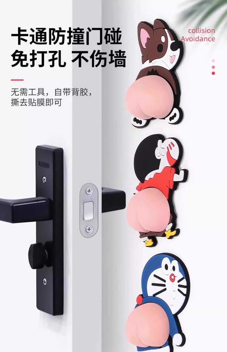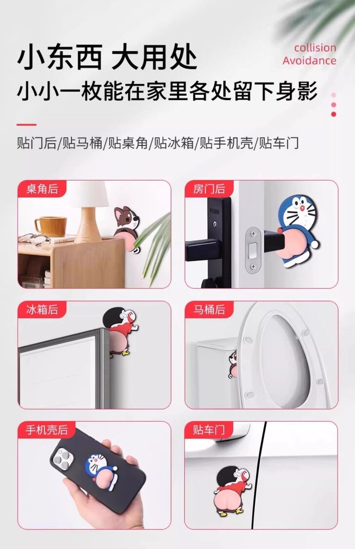 可愛蠟筆小新軟屁屁矽膠防磕冰箱貼3d立體卡通防撞貼矽膠家用裝飾