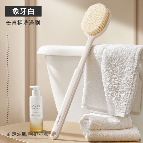 【加長直柄貼合背部】橢圓洗澡刷-象牙白