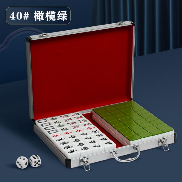 顏色分類:40#手搓麻將橄欖綠升級款 (144張贈收納鋁箱+桌布+骰子)