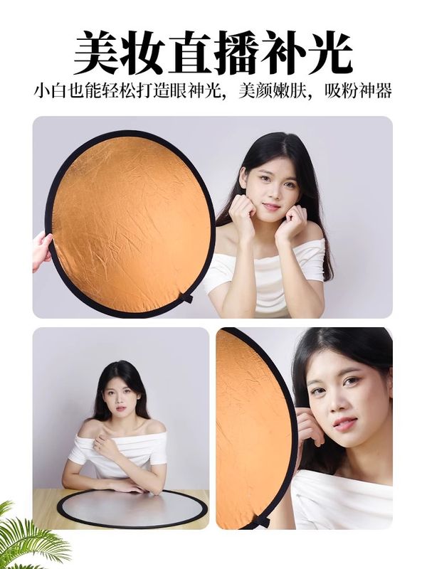 嘉華彩反光板攝影二合一打光板圓形折疊便攜小型柔光板拍照直播拍攝人像擋光遮光板迷你補光板