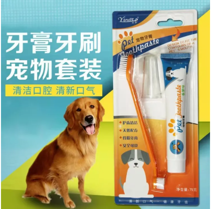 穎特狗狗牙刷牙膏套裝香草味 牙齒口腔清潔用品 牙齒護理狗牙刷套裝 70g / 個